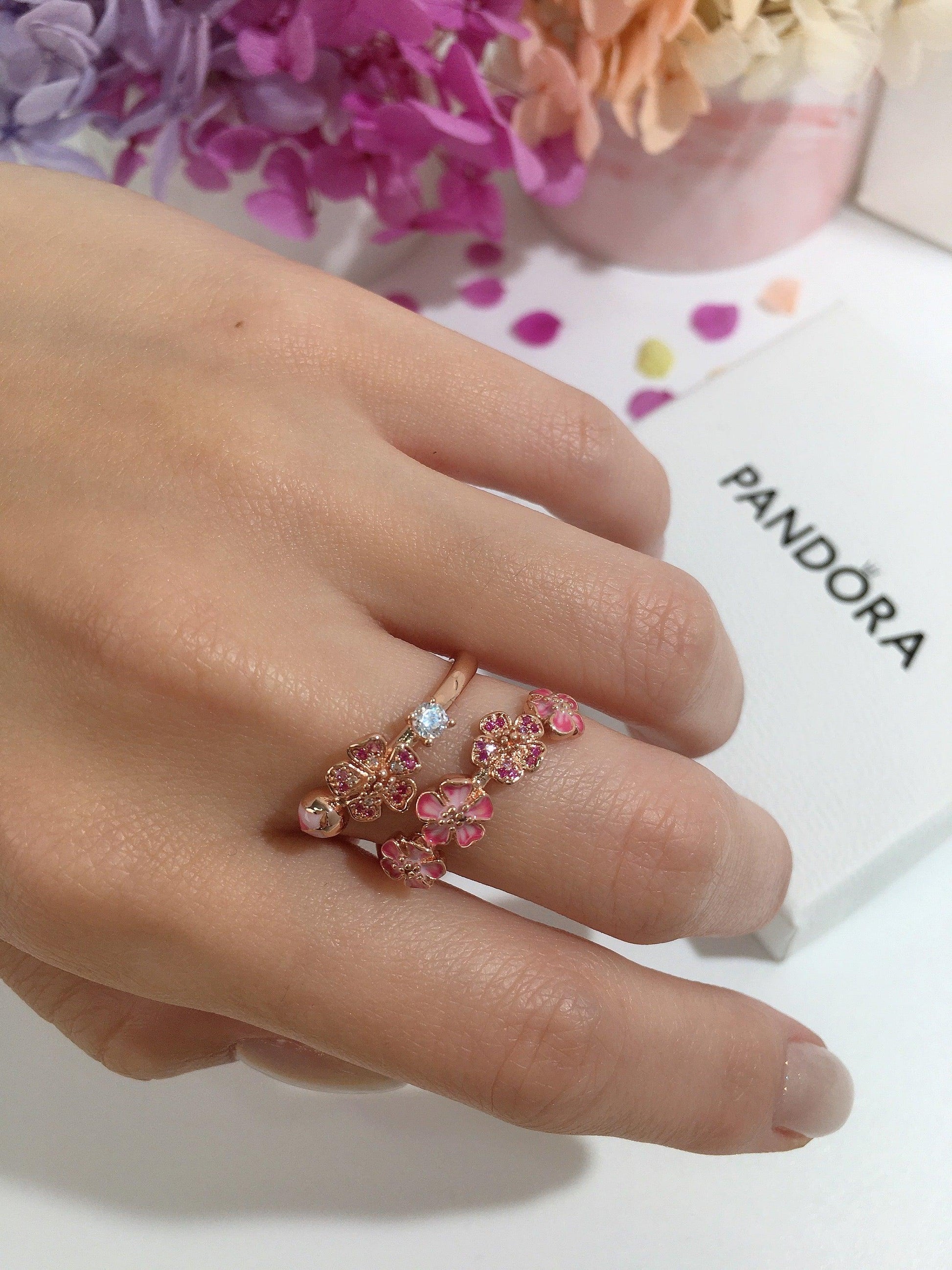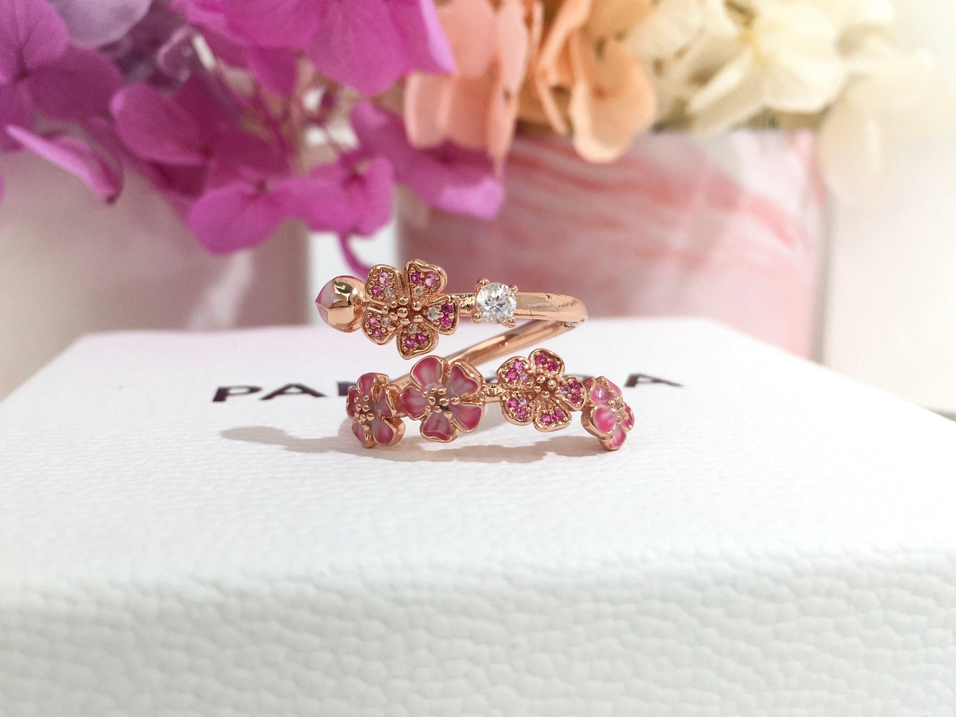 Anel Aberto de Ramo de Pessegueiro Rosa