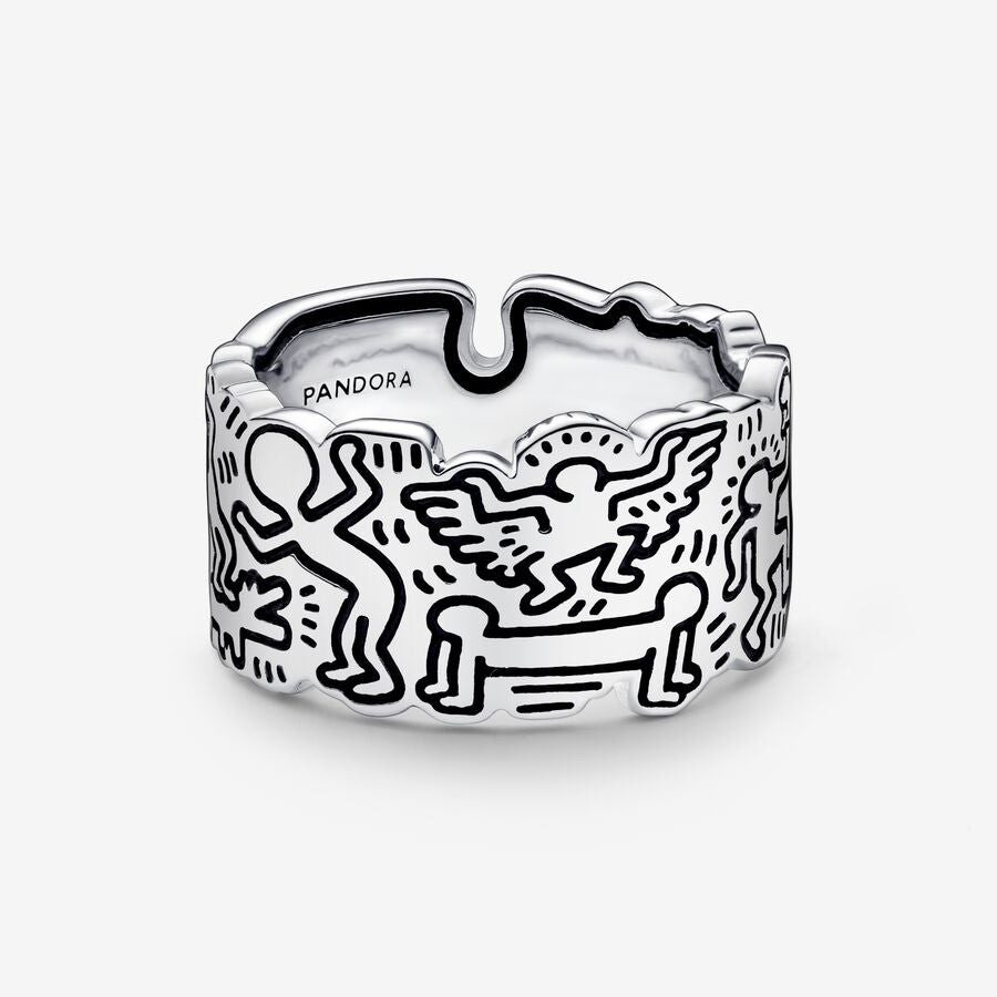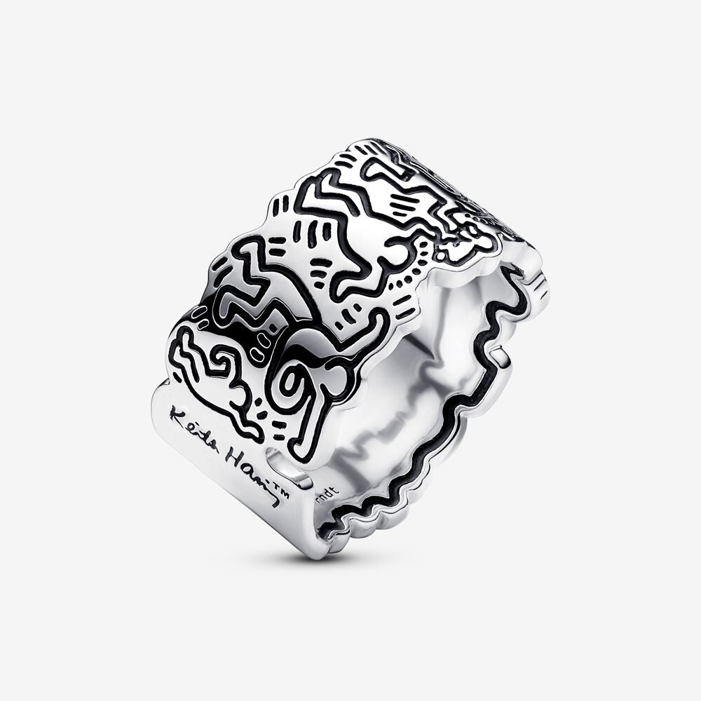 Feito de prata esterlina, nosso K. Haring Anel Arte de Linha de Amor e Pessoas apresenta as figuras dançantes icônicas do artista torcidos e se movendo por todo o caminho ao redor da banda. As linhas ousadas e figuras dançantes de Haring foram recriadas usando oxidação antiga negra, para que você possa levar o espírito da arte de rua com você onde quer que vá. Abrace a arte do estilo individual com este item de colecionador e use uma obra da história da arte como um lembrete constante de que a arte é para todos.