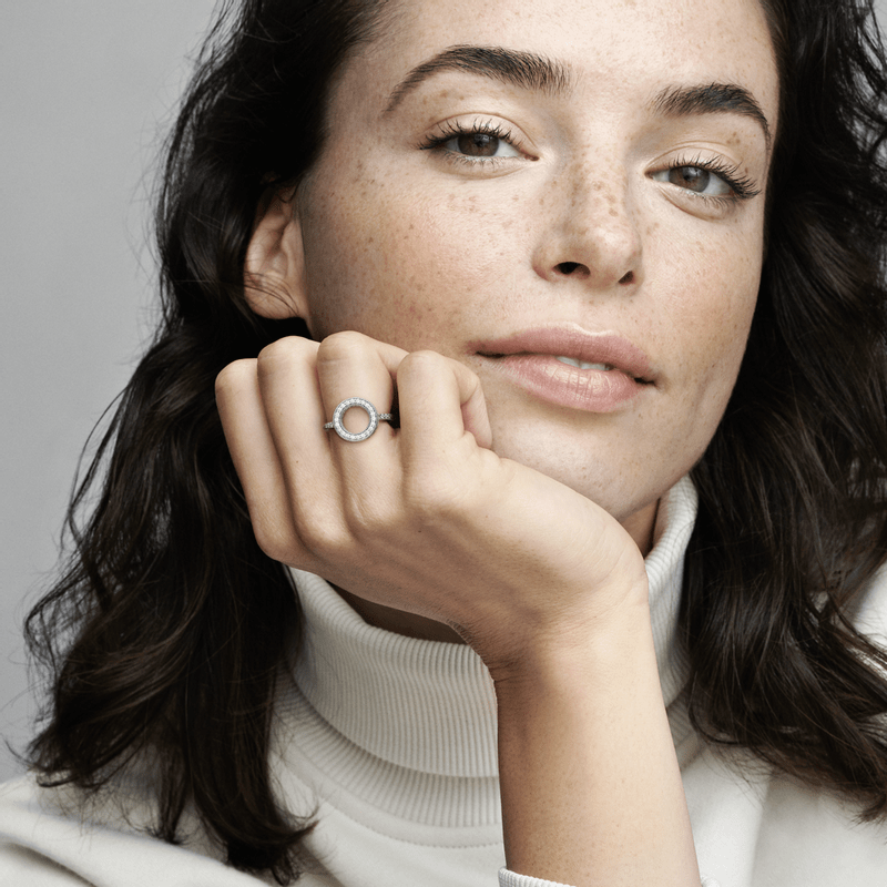 Vá do estilo vintage ao design abstrato com um anel. Este must-have acabado à mão em prata 925 com pedras transparentes, detalhes clássicos e corações recortados irão completar qualquer look.