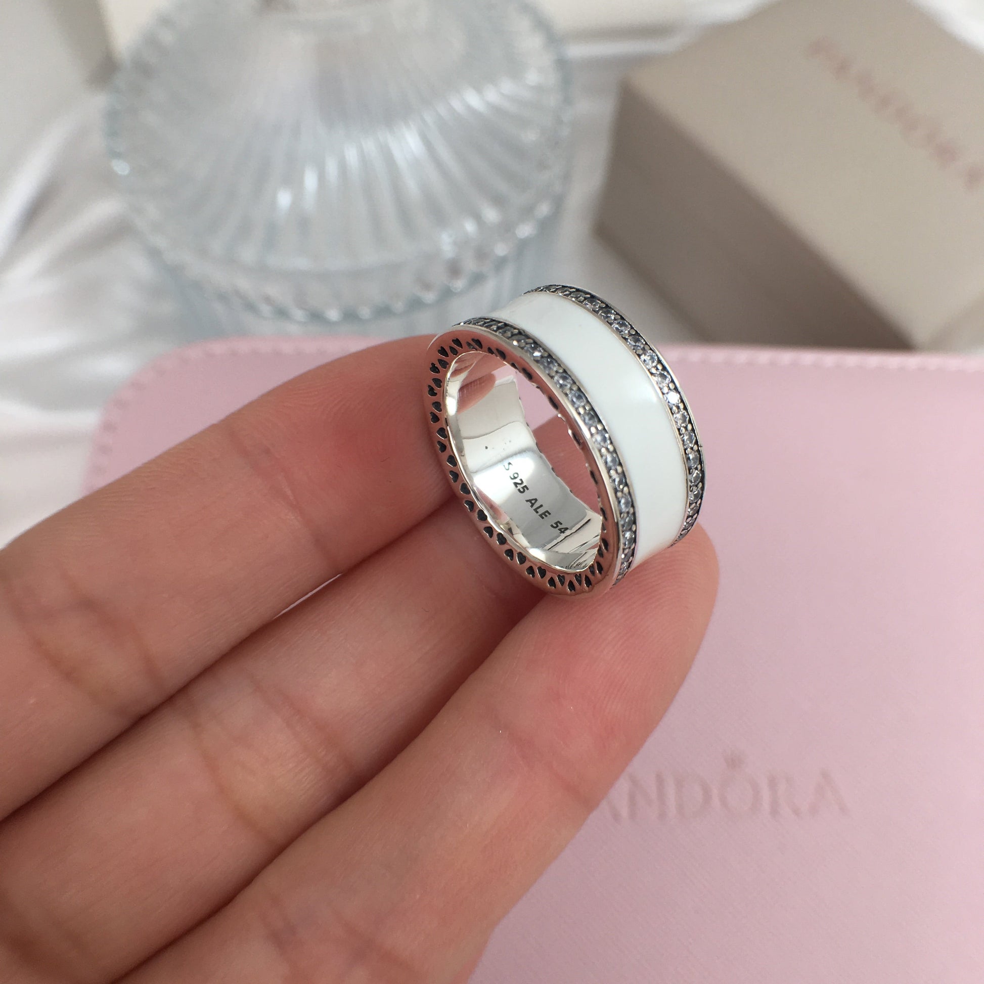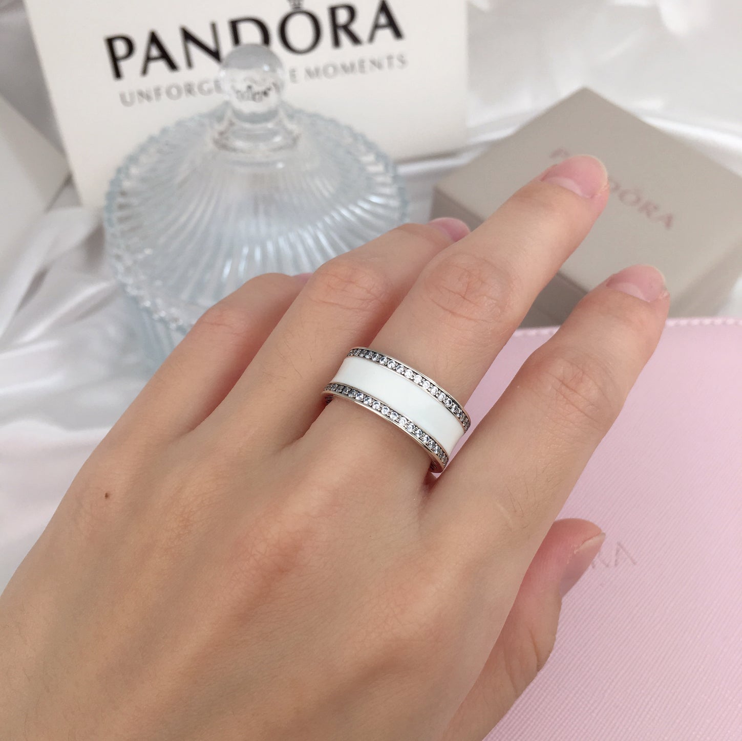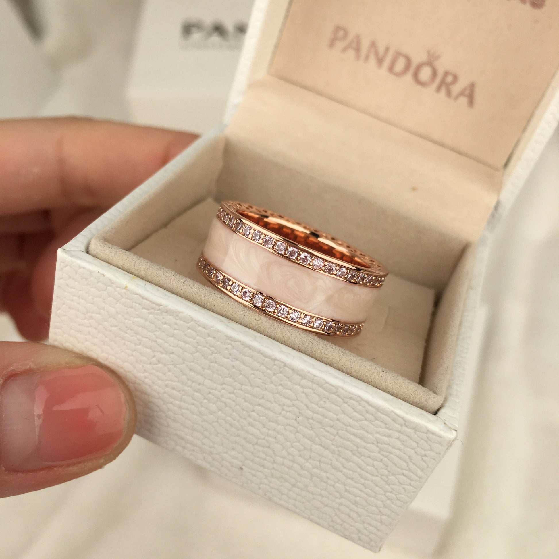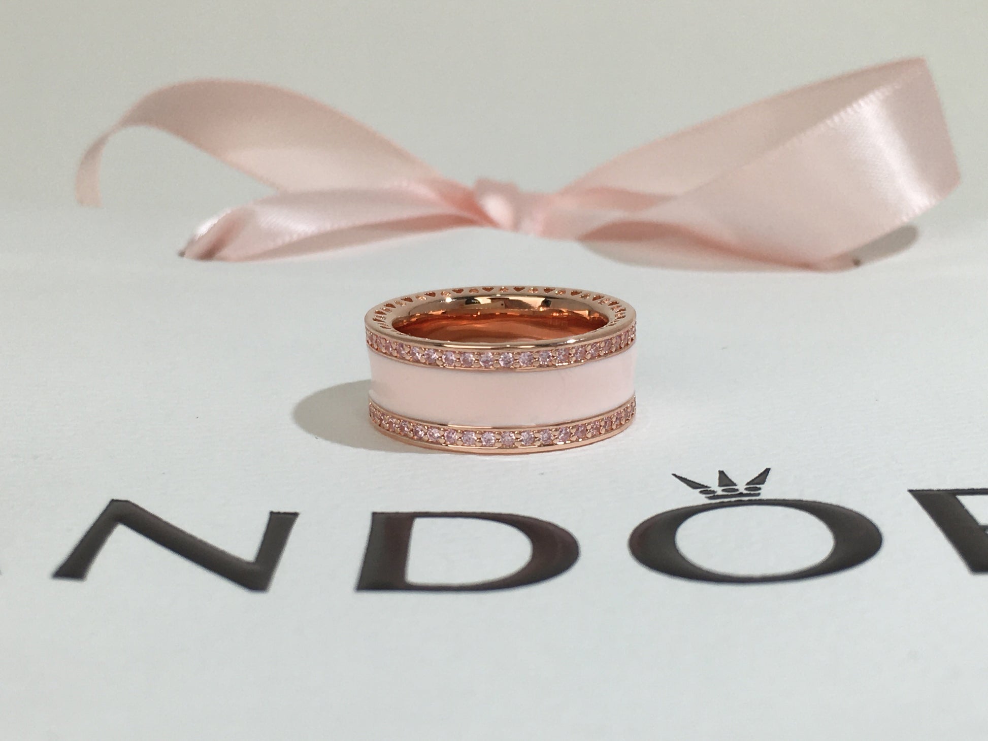 Ousado, clássico e contemporâneo, este anel de prata esterlina de banda larga é uma declaração de feminilidade e confiança. Pedras cintilantes delineiam o acabamento esmaltado rosa suave e marcante.
