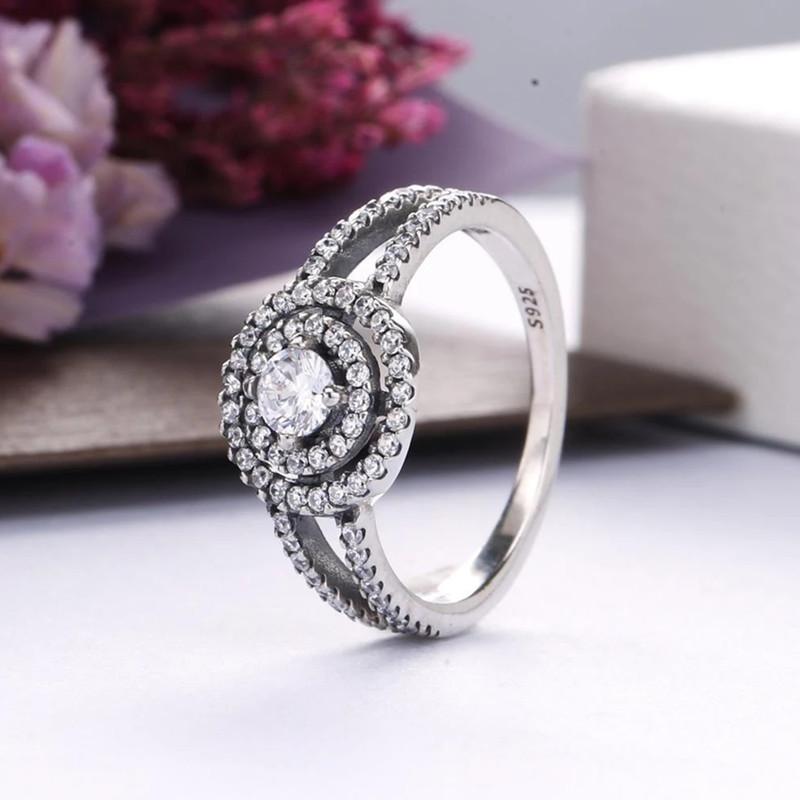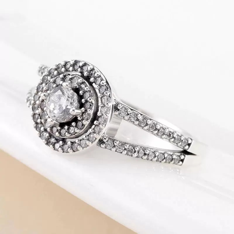 Dê o presente do estilo clássico com o Anel de Halo Duplo Brilhante. Com acabamento à mão em prata 925, esta peça cintilante é decorada com zircônia cúbica clara. A peça central da declaração apresenta uma grande pedra central levantada cercada por dois halos brilhantes. O halo externo fica ligeiramente mais baixo que o halo interno, com espaço entre eles para adicionar profundidade ao design. Trate seu ente querido com este anel e brincos combinando para uma combinação atraente.