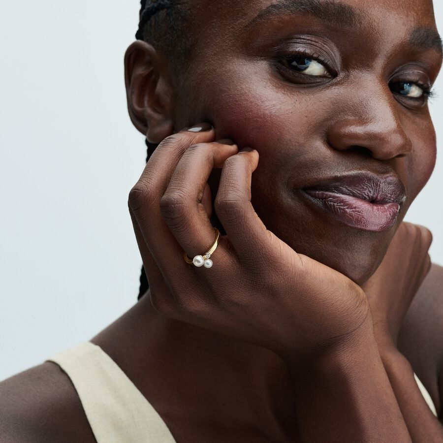 Celebre a proximidade com o nosso Anel de Perola Duo. Trabalhada em prata esterlina, o perfil ligeiramente quadrado da banda apresenta duas pérolas cultivadas de água doce tratadas assimetricamente colocadas, acompanhadas de zircônia cúbica clara. Esta peça única, embelezada com o logotipo gravado, captura a essência das pérolas clássicas, simbolizando beleza, sabedoria e amor. Use-o como um símbolo de sua conexão única. Por favor, note que cada pérola cultivada de água doce tratada é única e pode variar em tamanho e cor; Pode ocorrer desgaste normal com este material. Nossas pérolas cultivadas em água doce são tratadas com clareamento e realce de brilho.