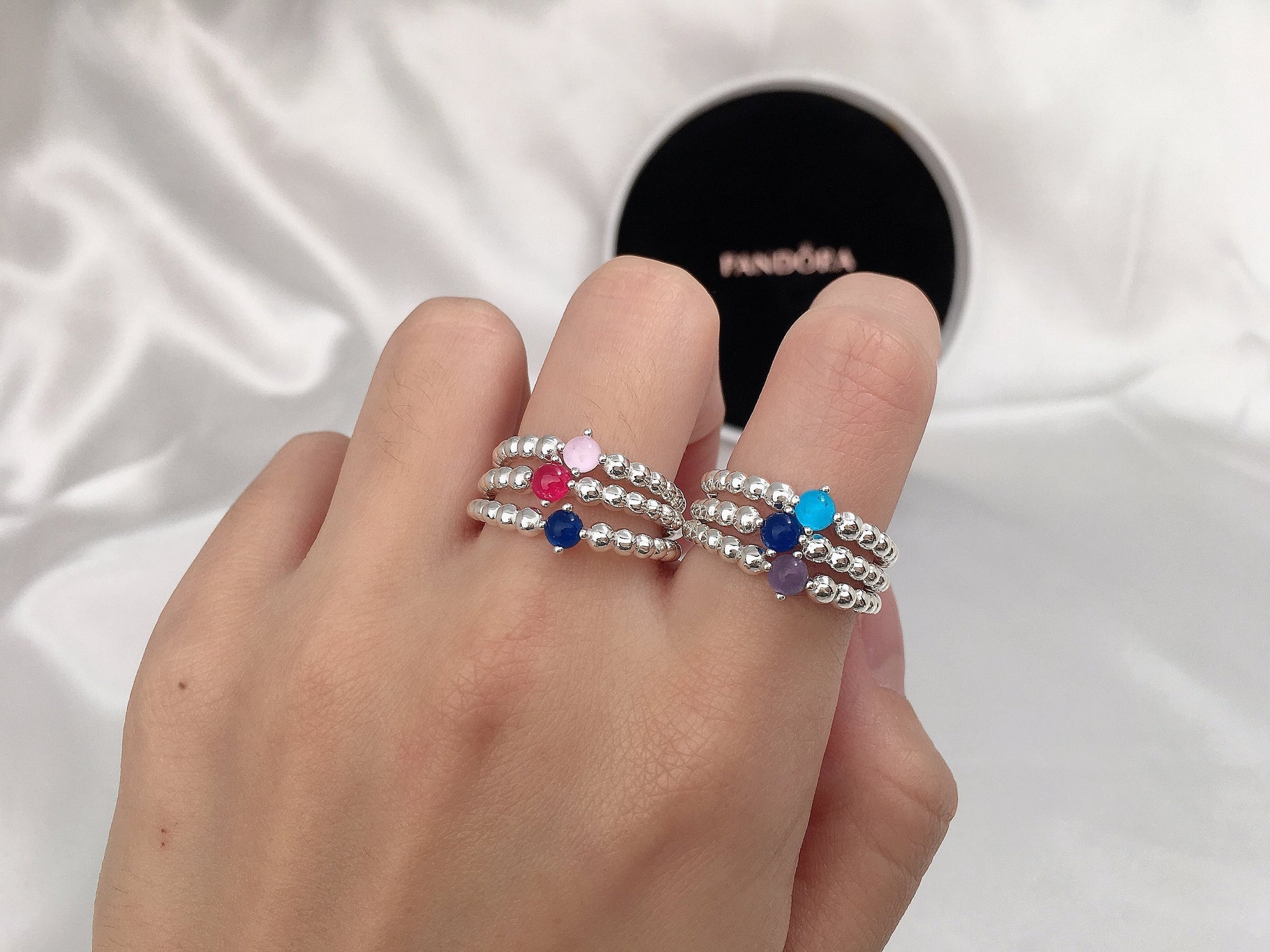 O toque suave do algodão ou uma nuvem no céu? Tudo o que você é e tudo o que você ama, capturado pelas cores. Inspirado nas decorações esféricas da coleção Purely, este anel com acabamento à mão feito de prata esterlina 925 apresenta um cristal artificial . Use-o para definir seu estilo, escolhendo as cores mais adequadas para expressar sua personalidade. Emparelhe criando combinações em um único dedo ou nos dedos de ambas as mãos, em tons semelhantes ou simplesmente escolhendo as cores que têm o significado mais importante para você.