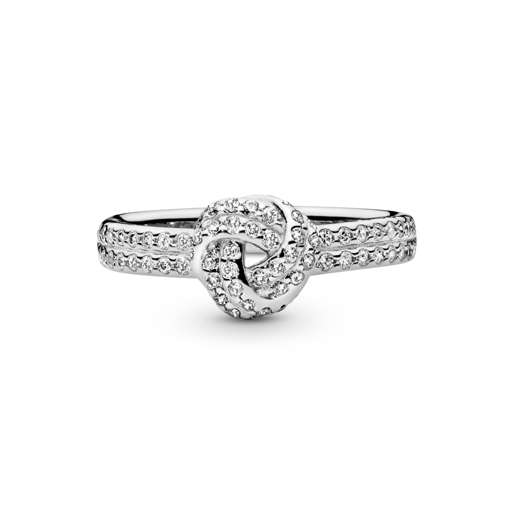 O nó de amor é um símbolo eterno de laços indissolúveis. Este anel de prata esterlina 925 e zircônia cúbica é uma adição atemporal a qualquer coleção de joias. O clássico motivo do nó de amor é criado usando duas fileiras de pedras cintilantes que continuam ao longo da banda. Use-o sozinho para torná-lo o protagonista do seu look ou combine-o com joias semelhantes para criar um estilo personalizado.