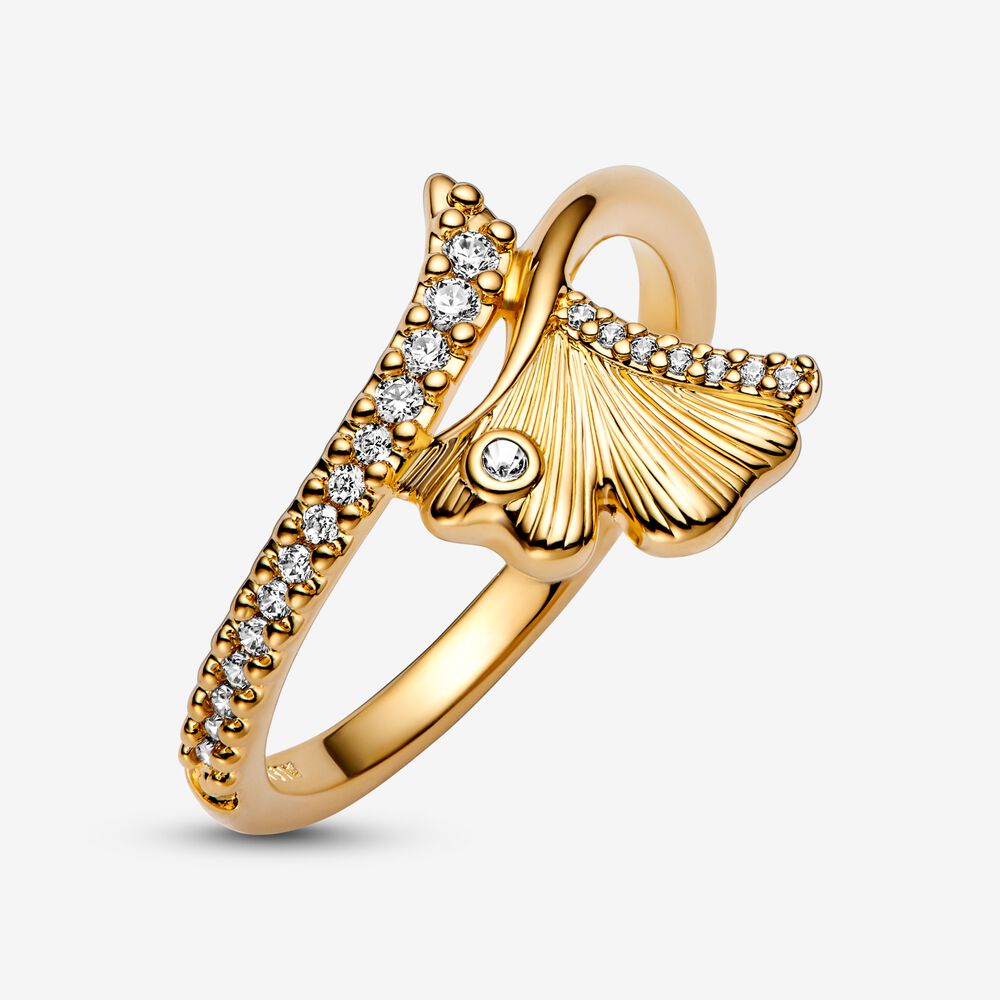 Sinta-se em um com você mesmo usando nosso Anel Ondulado de Folha de Ginkgo. Este anel banhado a ouro de 14k apresenta uma folha de Ginkgo, que é um símbolo icônico de unidade e harmonização de opostos. A folha é acentuada com detalhes realistas e decorada com uma fileira de pavé ao longo de um lado e uma pedra em um canto. A banda de anel ondulado imita a forma orgânica de uma haste e é forrada com pavé ao longo de um terço de seu comprimento.