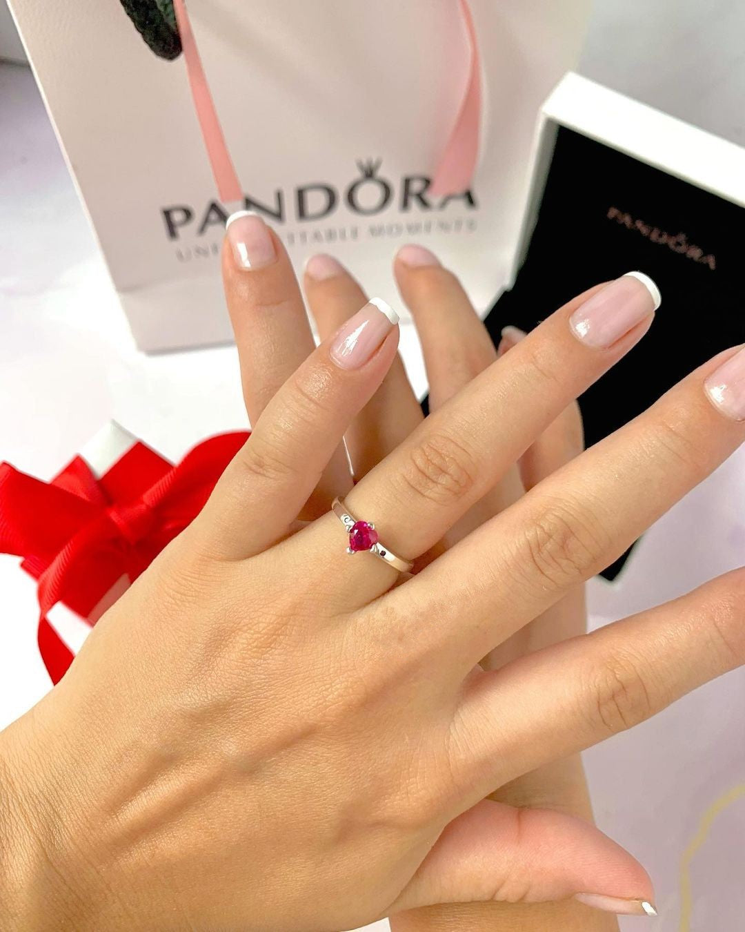 Coloque seu coração em chamas com este brilhante anel de coração da Pandora. Este anel solitário deslumbrante apresenta uma pedra em forma de coração em vermelho rubi, flanqueada por duas pedras cintilantes.