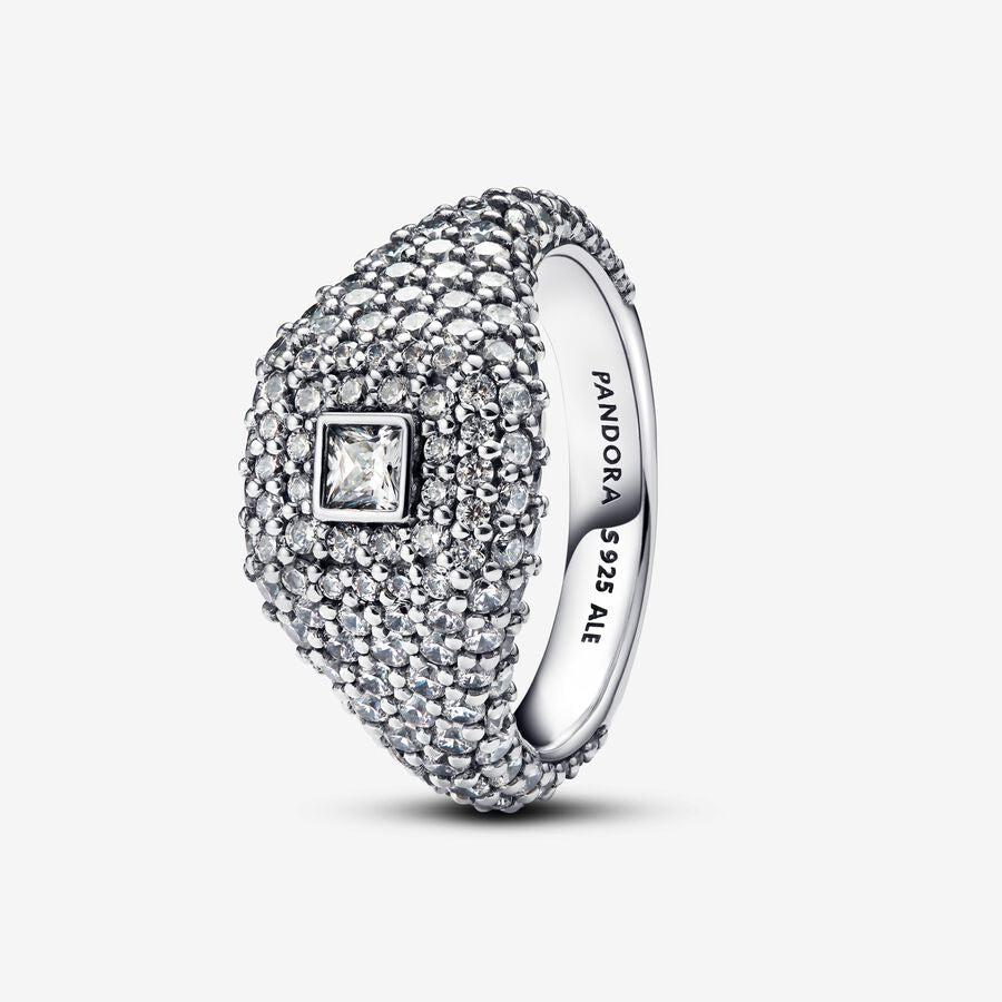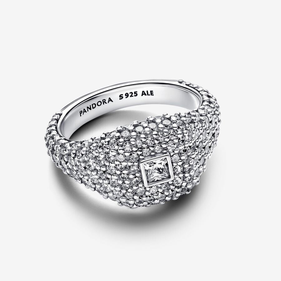 Brilhe intensamente durante a temporada festiva e além com o Anel Pavé Square. Confeccionada em prata esterlina, apresenta uma zircônia cúbica central cintilante e transparente, cercada por pavé para brilho máximo e um acabamento atraente. Perfeito para looks modernos ou clássicos, combine-o com suas roupas favoritas para um toque de brilho.