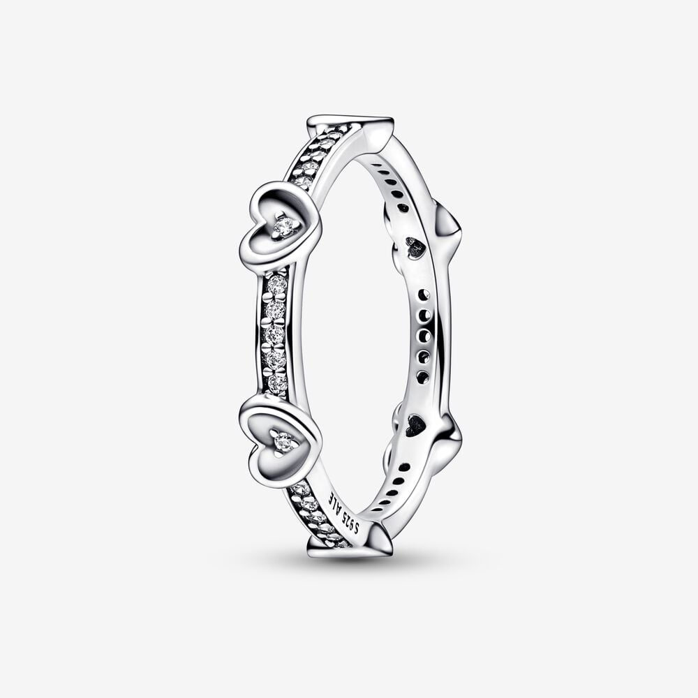 Amor eterno. Com acabamento manual em prata 925, o nosso Anel Radiante de Corações Cintilantes apresenta uma fileira interminável de corações elevados, cada um com uma zircónia cúbica clara de corte brilhante e redondo e ligado por um pavimento cintilante. Um presente significativo para o seu único e único.