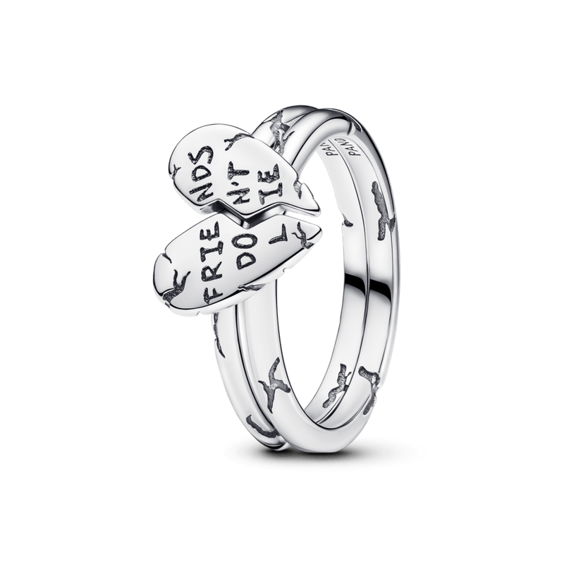 Mergulhe no universo de Stranger Things com o Anel de Prata Duplo Coração Partido. Esta peça única, feita em prata 925, apresenta um design inspirado no símbolo de amizade inquebrável da série. O coração partido carrega a icônica frase "Friends Don't Lie" (Amigos não mentem), tornando-o o presente perfeito para compartilhar com alguém especial. Use-o como um lembrete da conexão genuína entre amigos, ou presenteie um fã da série para celebrar esse vínculo especial. Com um toque de nostalgia e estilo, o anel é ajustável e pode ser dividido, permitindo que você e sua melhor amiga usem cada metade. Leve a magia e o companheirismo de Stranger Things em cada momento do seu dia.