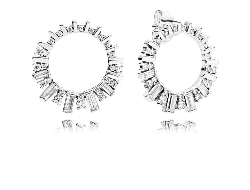 Opte por um estilo versátil com o brinco de círculo reversível com logotipo e pavé. Estes brincos de prata 925 apresentam uma pedra de zircônia cúbica incolor no centro da parte que fica no lóbulo e uma moldura circular reversível. A moldura é decorada com um pavé de pedras incolores de zircônia cúbica emolduradas por microesferas de um lado e o logotipo Pandora do outro. A moldura circular pode ser girada para mostrar o lado de paralelepípedos ou o lado do logotipo, permitindo criar estilos diferentes dependendo do seu humor.