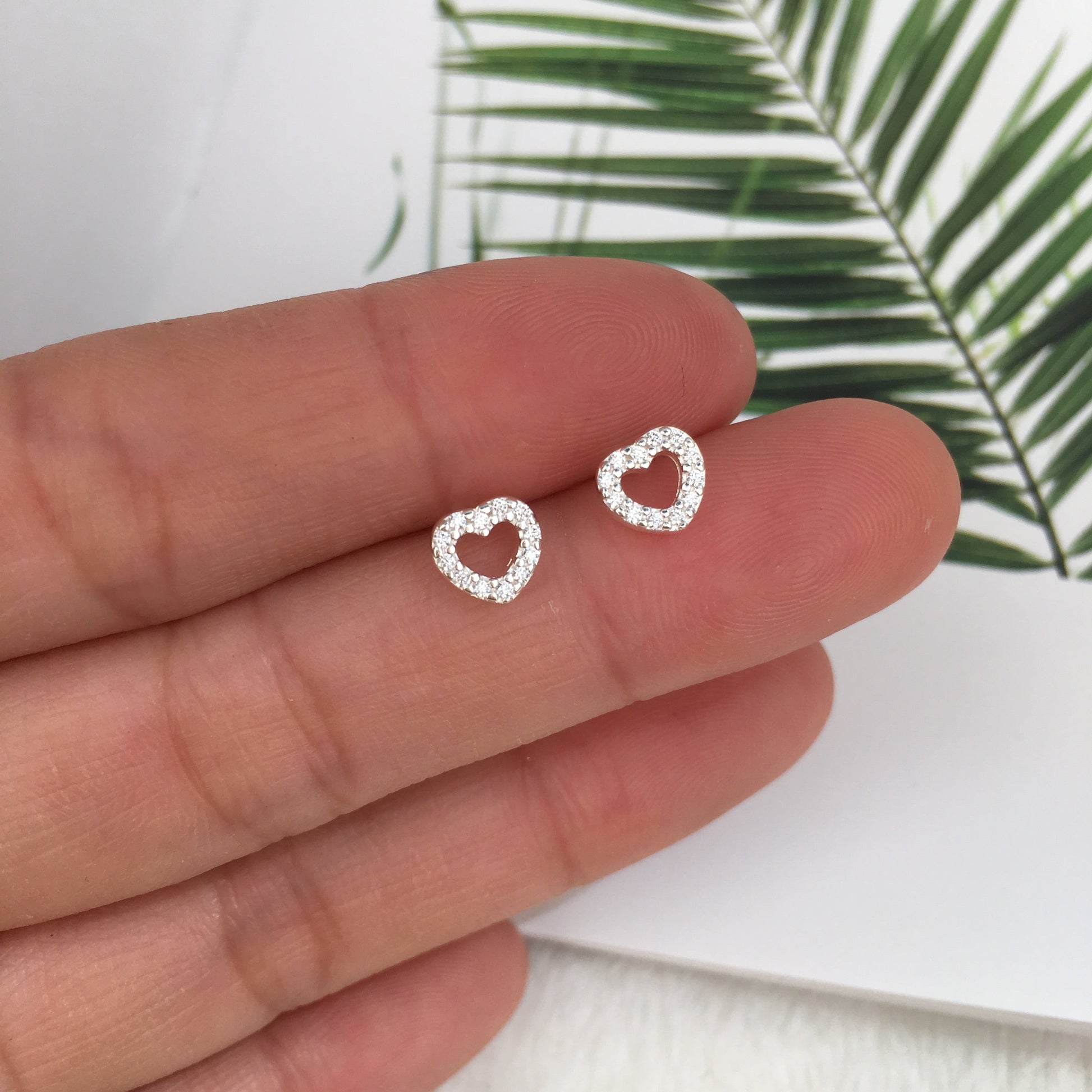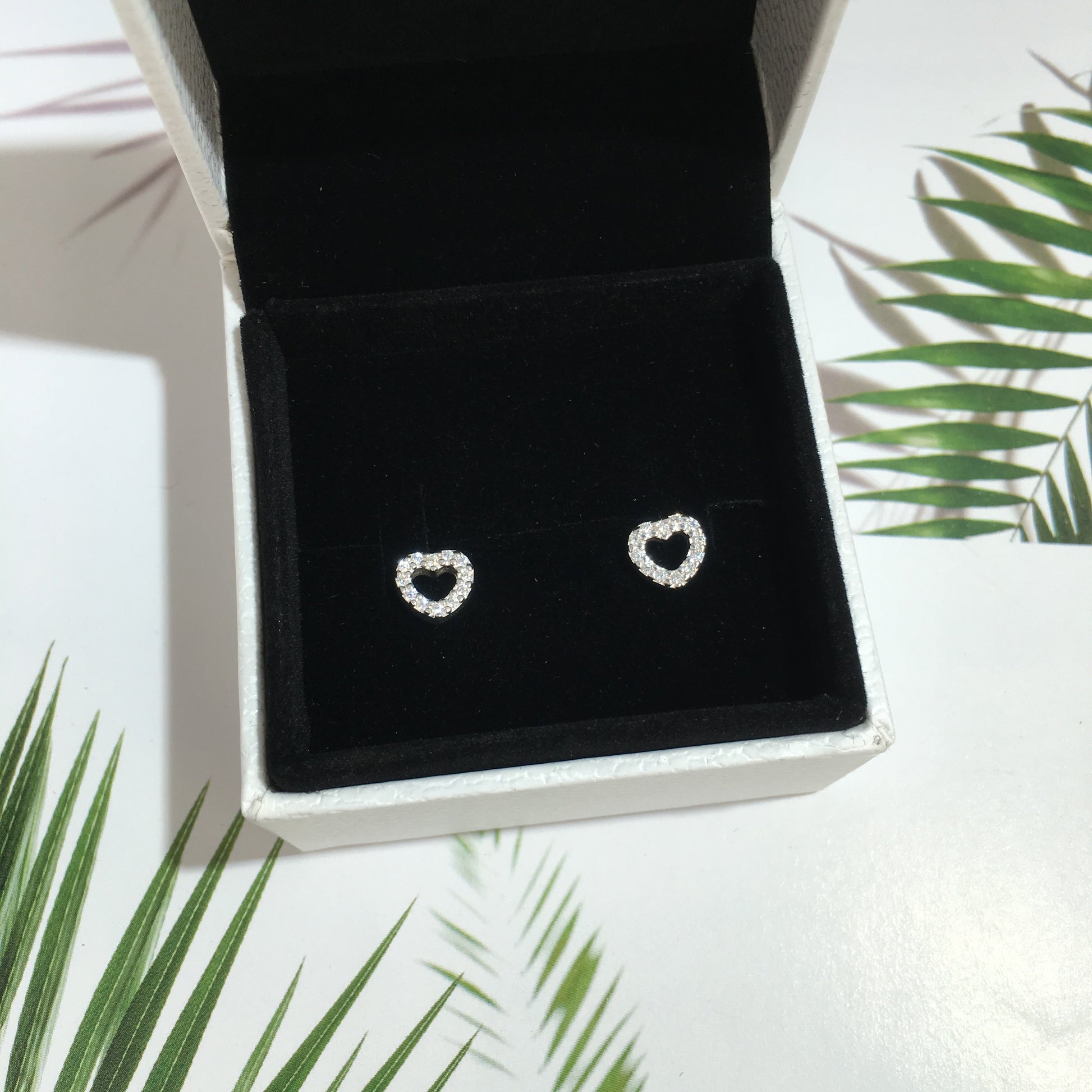 Um coração não precisa ser grande para ser cheio de amor. Nossos delicados brincos Open Heart são acabados à mão em um elegante e aconchegante. O design de coração aberto é cuidadosamente definido à mão com zircônia cúbica para brilho sutil conforme captam a luz. Use-os tradicionalmente, como um par ou individualmente como parte de uma pilha de brincos com curadoria.