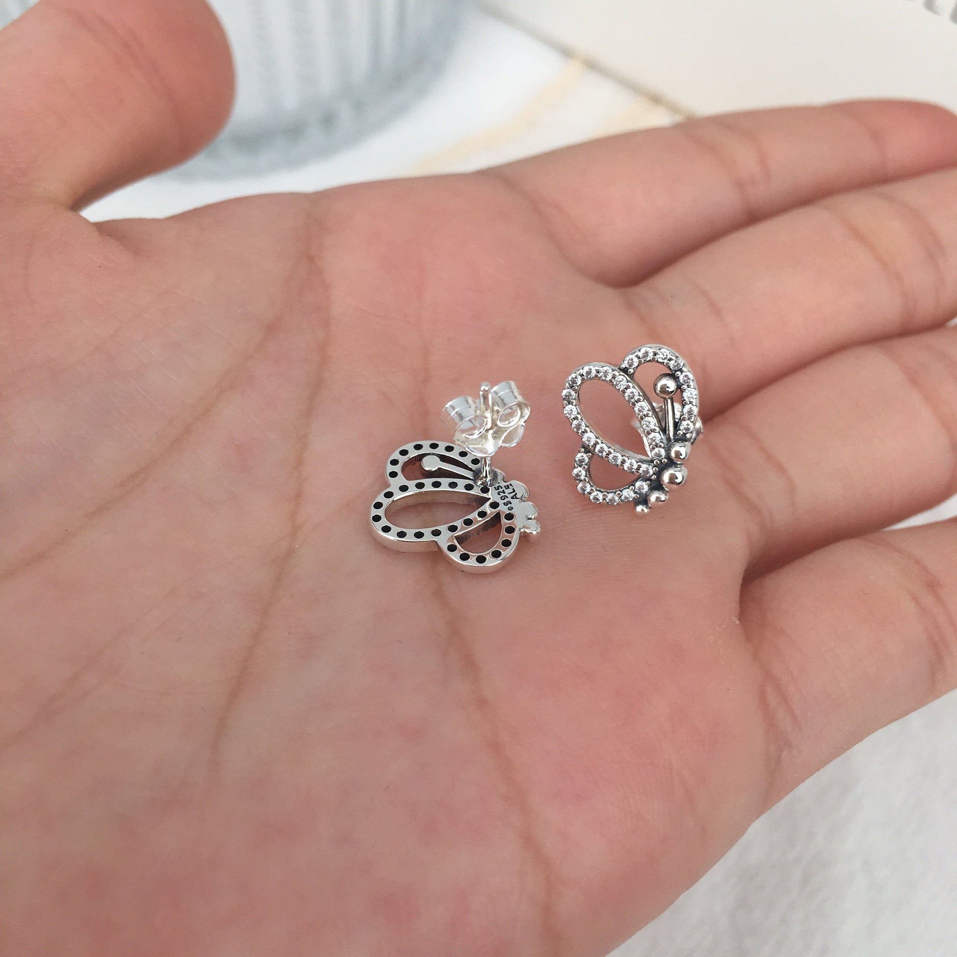 Posicionadas como se estivessem prontas para voar, as borboletas que decoram esses brincos de prata 925 são contornadas com pedras cintilantes que captam a luz a cada movimento. Os detalhes frisados criam um belo contraste.