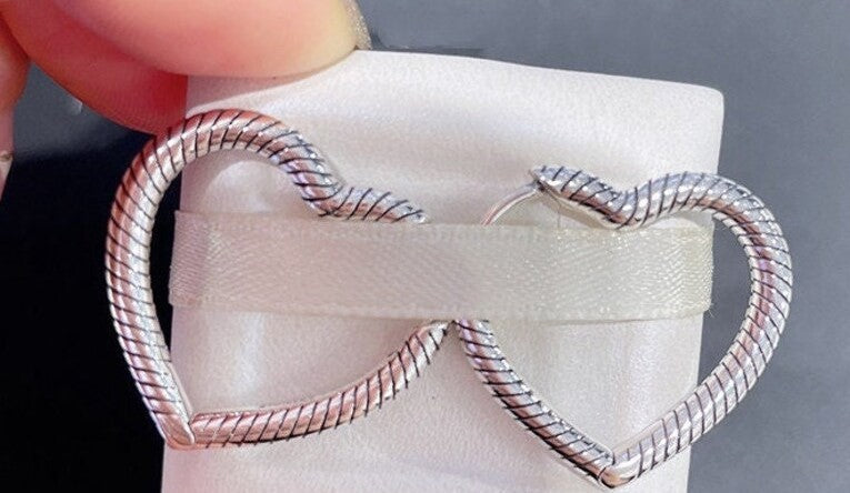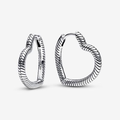 Brincos pelos quais você vai se apaixonar. Feitos em prata 925 com o icônico padrão de corrente de cobra da Pandora, esses aros assimétricos são um lembrete de que o verdadeiro amor nunca é uniforme. Use esses símbolos de amor próprio por conta própria ou estilize até três de seus berloques, pendentes e pingentes e conte ao mundo sua história.