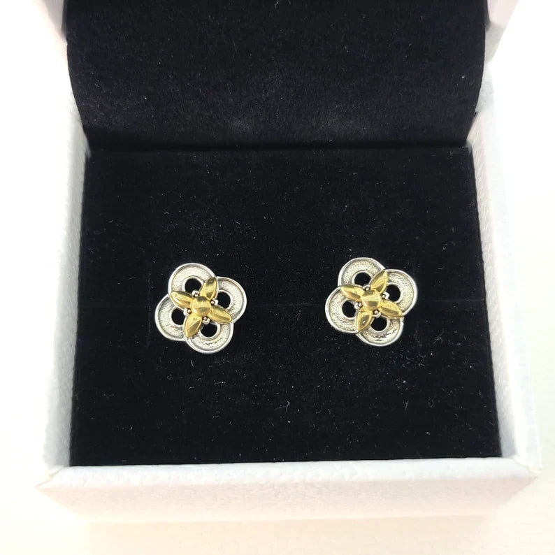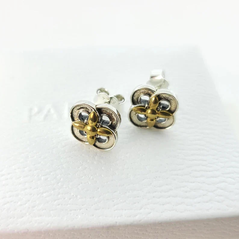 Adicione um toque exuberante ao seu look com os Brinco Flor em Dois Tons. Ostentando uma flor dourada em 14K no formato de marquise simplificada com um miolo em alto-relevo emoldurado por círculos nivelados em prata de lei, estes brincos petit expressam a sofisticação elegante. Inspirados nos formatos florais clássicos e nos círculos formados por monogramas da Pandora em intersecção, estes dois brincos petit compõem um conjunto lúdico e elegante de finalizar qualquer look – e será o seu par curinga para qualquer ocasião.