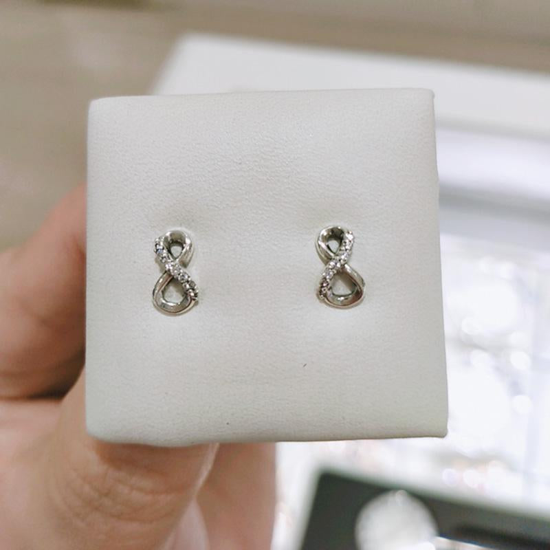 Os brincos com acabamento manual e feitos em prata de lei apresentam o querido símbolo do infinito adornado de pedras de zircônia.