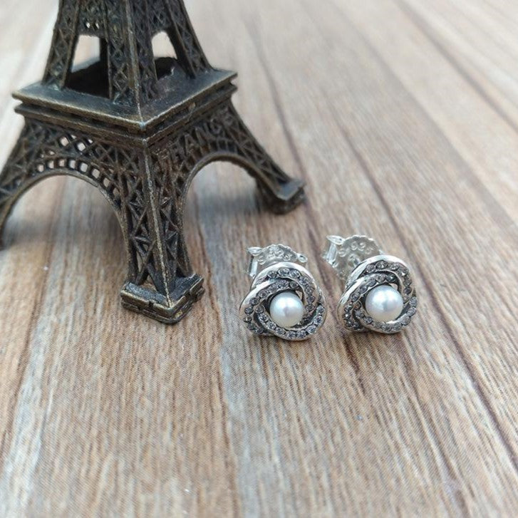Brincos de prata com cristais brancos e 27 micro zircónias.