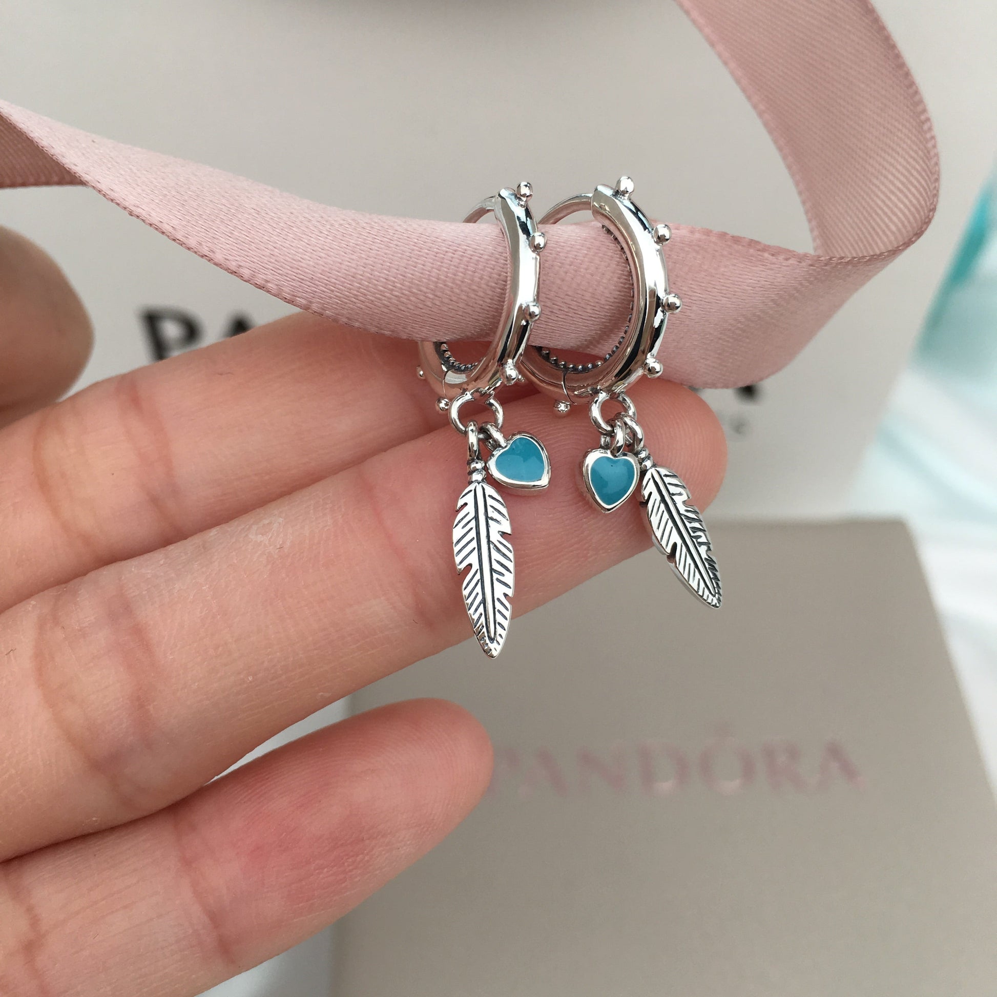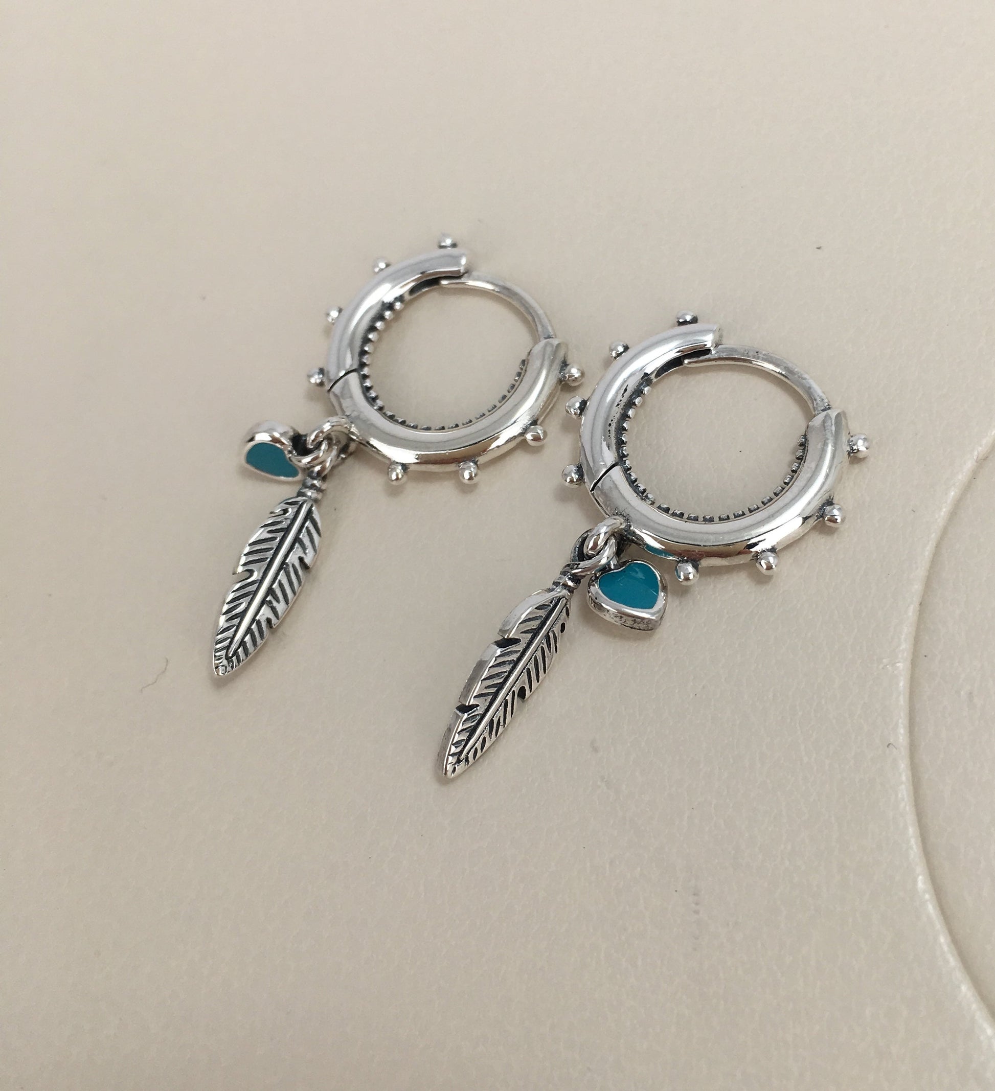Simbolizando a liberdade, delicadas penas em prata 925 com lindos detalhes em coração em esmalte turquesa pintado à mão adornam este par de brincos de inspiração boêmia.