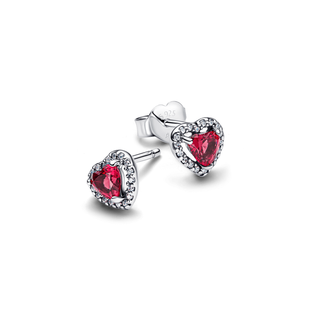 Brinco Prata Pequeno Coração Vermelho Elevado
