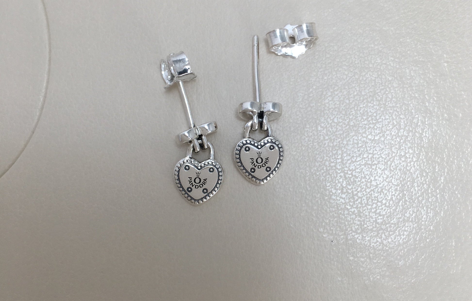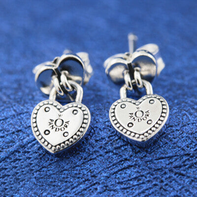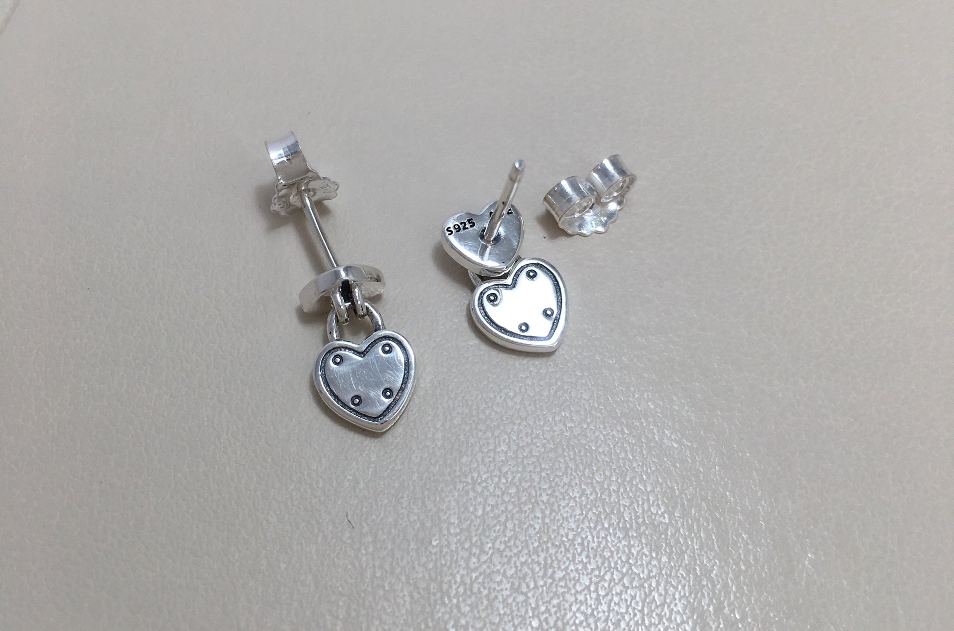 Brincos em prata 925 com detalhe em formato de coração cadeado com logotipo. A jóia simbólica definitivamente aumentará sua essência interior