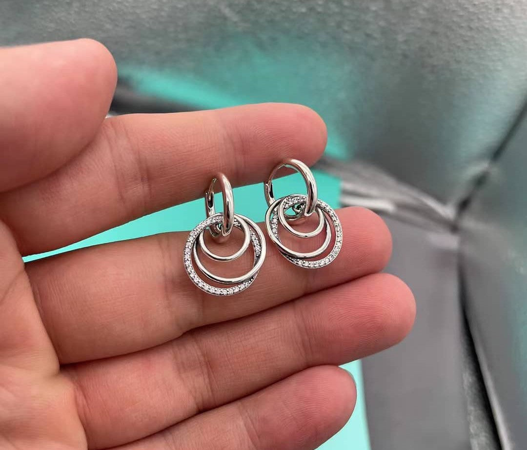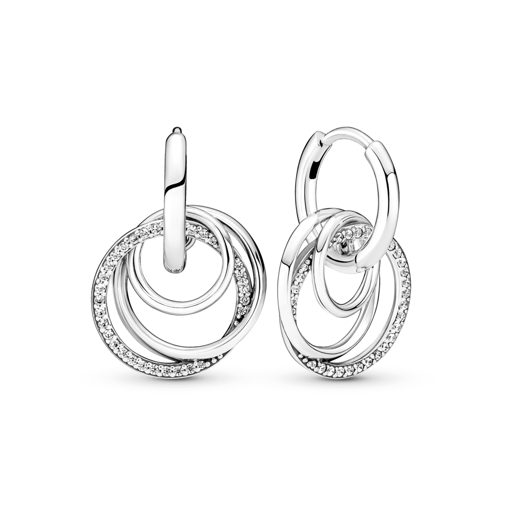 Símbolo dos vínculos inquebráveis, cada um dos brincos de argola circundados Família para sempre ostenta três círculos entrelaçados em uma argola: duas polidas em prata de lei e uma decorada com uma fileira de pavé de zircônias cúbicas transparentes. A harmonia dos vários formatos simboliza como as famílias ficam juntas apesar das diferenças.
