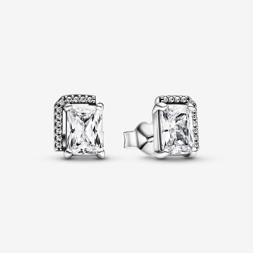 Use o efeito halo. Nossos Brincos de Halo Retangular trazem elegância clássica ao seu visual cotidiano, feito de prata esterlina com pedras de zircônia cúbicas retangulares de corte radiante. Terminadas com um halo de pavé que atinge cerca de metade de cada brinco, essas declarações brilhantes reinterpretam a estética tradicional de halo para criar grampos modernos de caixa de joias.