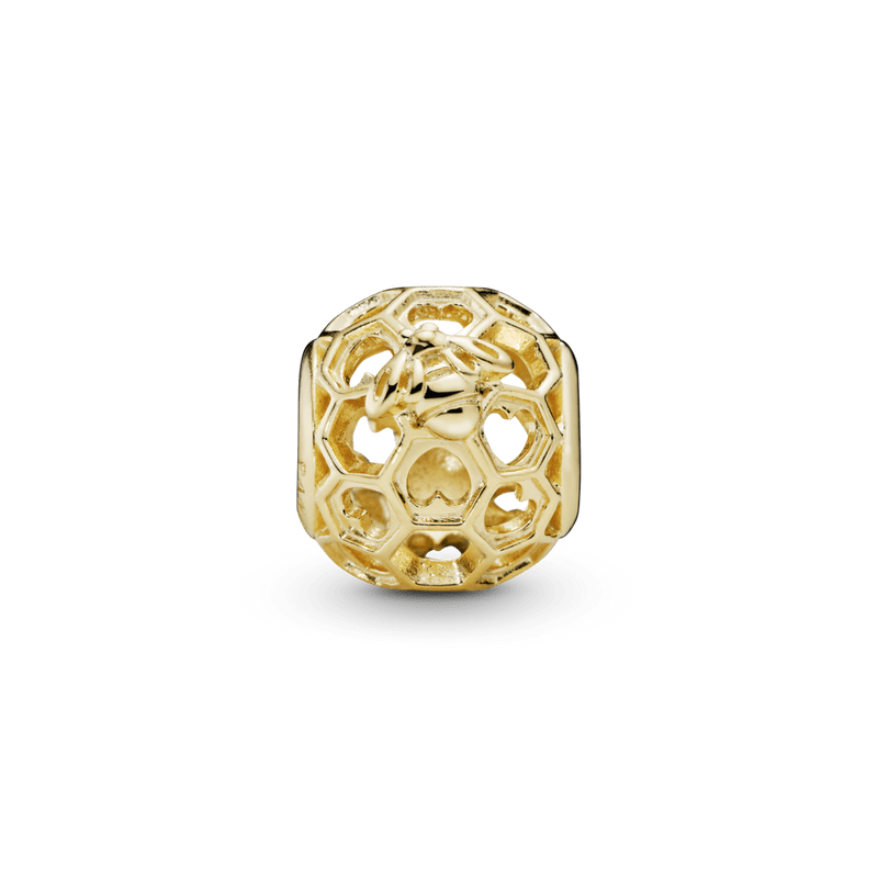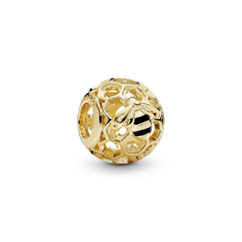 Alimente seu amor pelos doces com este charm em prata 925 com banho em ouro 18k. Seu design vazado parece uma colmeia, e a abelha é super estilosa em esmalte preto.