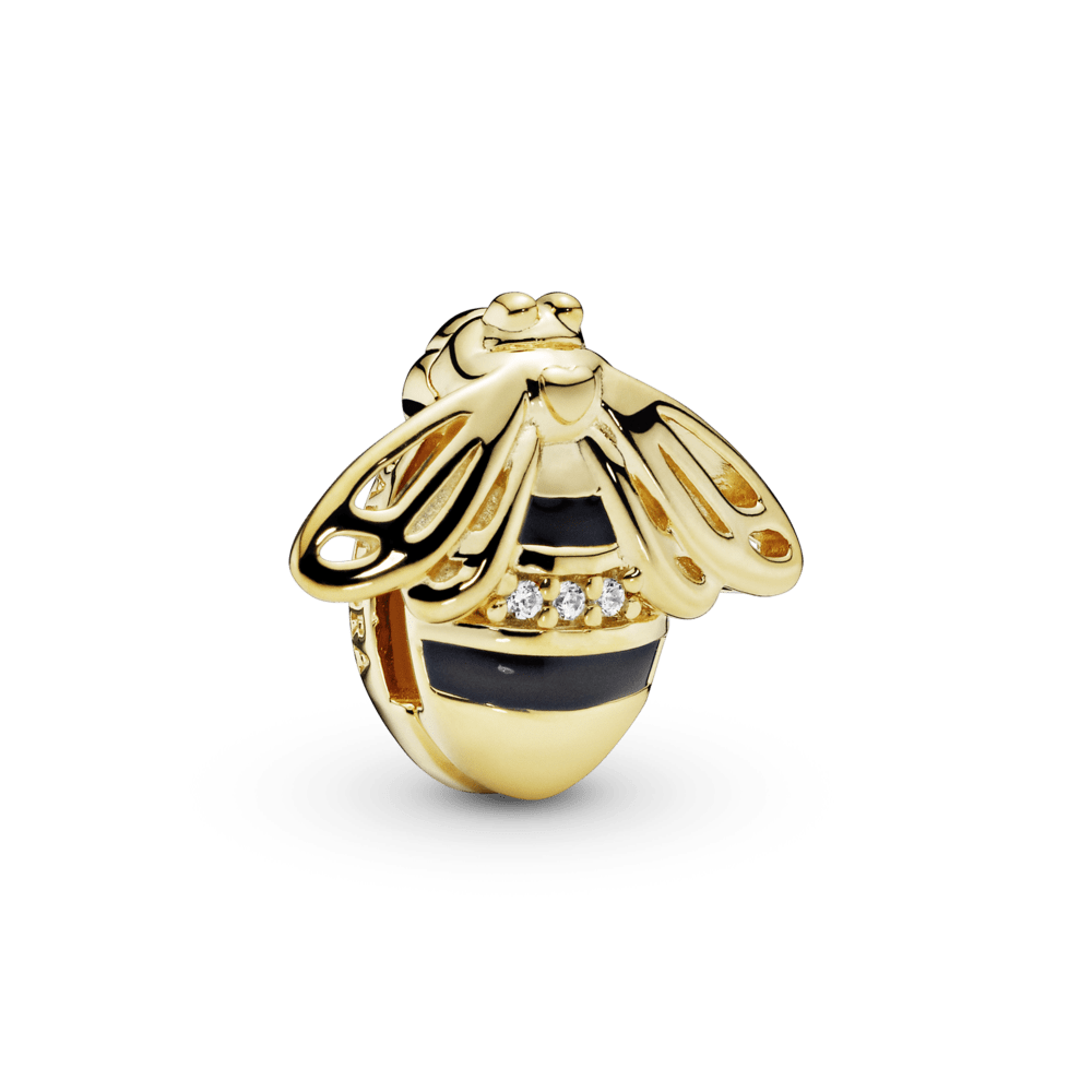 Este Reflexions Bee Clip Charm em radiante 14k ouro plating é moldado como uma abelha, detalhado com listras de esmalte preto e uma linha de pedras brilhantes. Coloque o zumbido no seu estilo e conecte-se à sua pulseira de malha favorita.