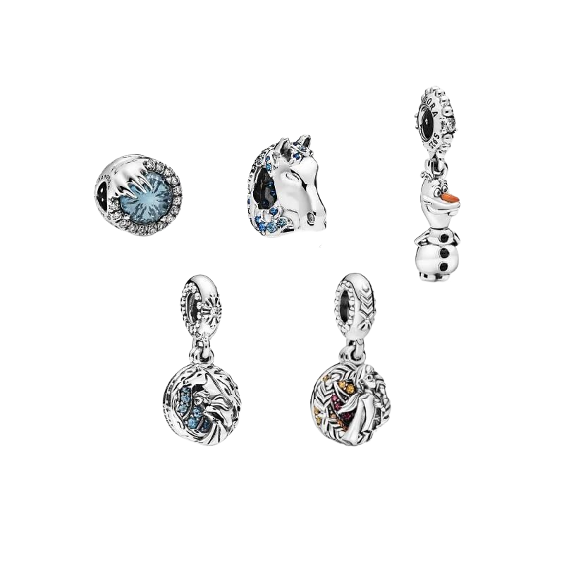 Inspire-se com a nova coleção de Charms do aclamado filme da Disney Frozen, com os mais queridos personagens, Elza, Olaf, Anna, Nokk.