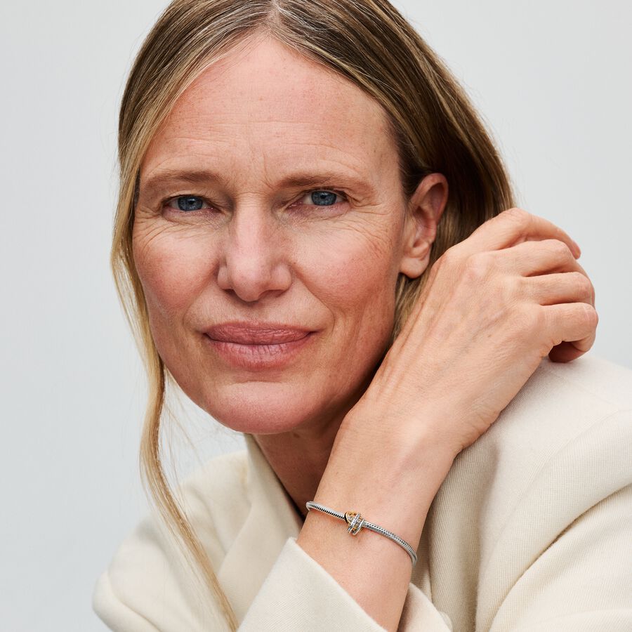 Mantenha seus amores próximos com nosso Charm de Corações Entrelaçados, criado em prata esterlina e com um coração banhado a ouro 14k. O motivo corações entrelaçados simboliza seus laços familiares mais preciosos. As características de charme incluem linhas delicadamente trabalhadas formando uma forma de coração com uma mensagem gravada: "Stepmum Love makes us family" Madrasta, o amor nos torna uma família. O design exclusivo incorpora um coração impresso para o 'u' e um círculo de prata de lei preso em um ângulo. Inspirada em diversas figuras maternas, esta peça é uma expressão sincera do amor familiar.