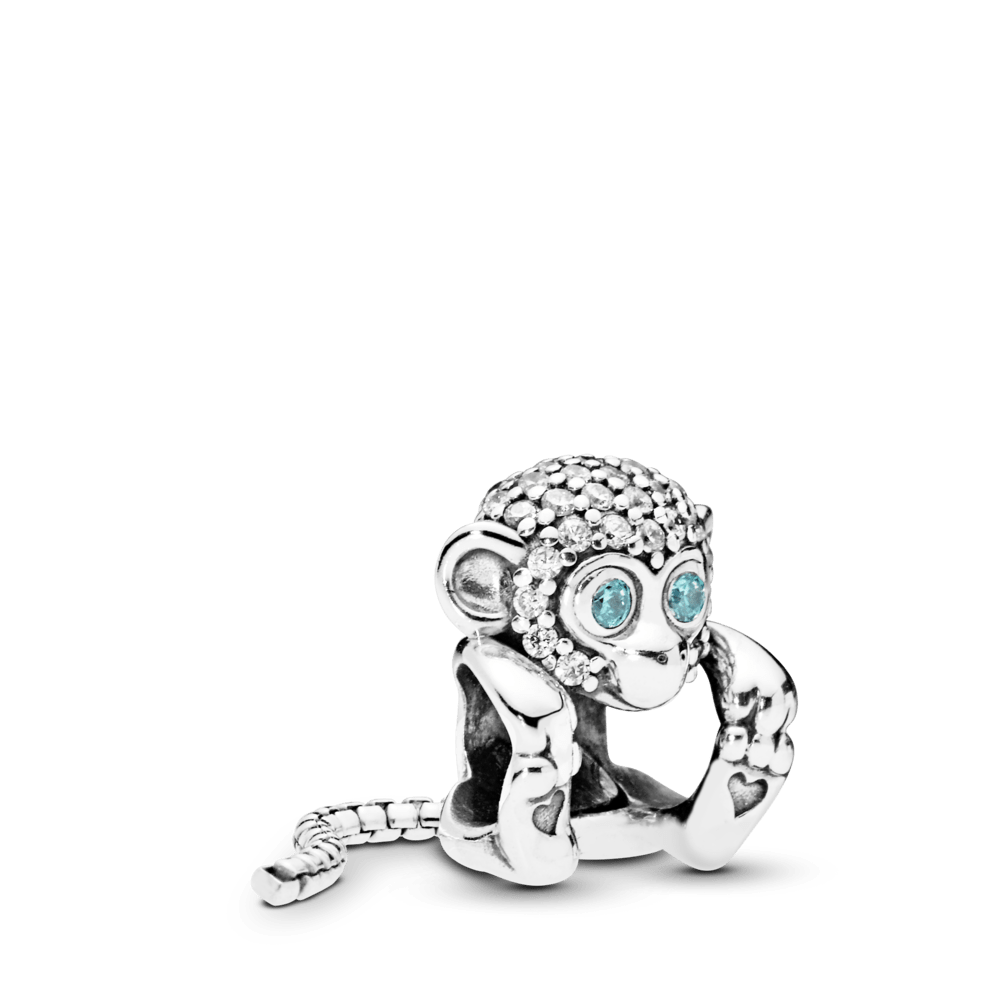 Liberte o seu lado selvagem com este charm de macaco brincalhão em prata de lei, detalhado com olhos de pedra azul e uma cabeça de pedra cintilante. o cara atrevido tem uma cauda de cobra balançando e pés adoráveis enfeitados com um coração. ele se enfia em um bracelete ou colar através de seu corpo, revelando a superfície da transportadora escolhida por meio de sua barriga. junte-o a outros charms de animais para criar um zoológico de estilo.