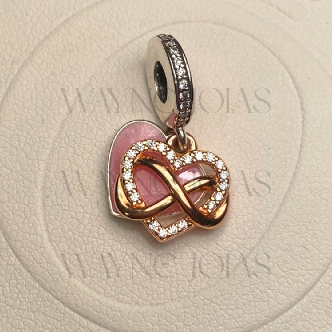 Leve o seu amor ao infinito e além com este pendente de coração infinito cintilante. O pendente frontal é acabado à mão em banho de ouro rosa 14k e apresenta um sinal de infinito em volta de um coração brilhante com zircônia cúbica transparente. O esmalte rosa aplicado à mão do pendente traseiro fornece um doce pano de fundo para a mensagem cheia de amor do pendente com a gravação “Família para sempre e sempre”.