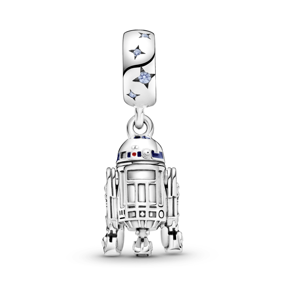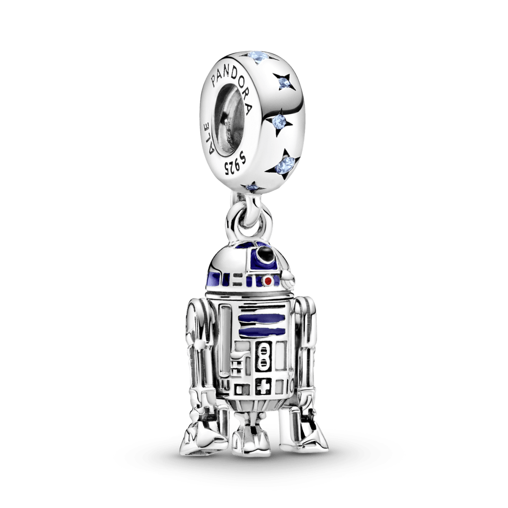 Liberte seu espírito divertido com o Star Wars R2-D2. Este charm é feito à mão em prata 925 com toques de esmalte azul, vermelho e preto aplicados à mão e o fundo apresenta estrelas com pedras de zircônias cúbicas azuis no meio. Mesmo sem falar, R2-D2 é um dos personagens mais queridos e engraçados de Star Wars. O charm dá vida a ele com cabeça e braços em movimento e detalhes de máquina gravados. Emule a coragem e a criatividade do R2-D2 sempre que usar este pingente.