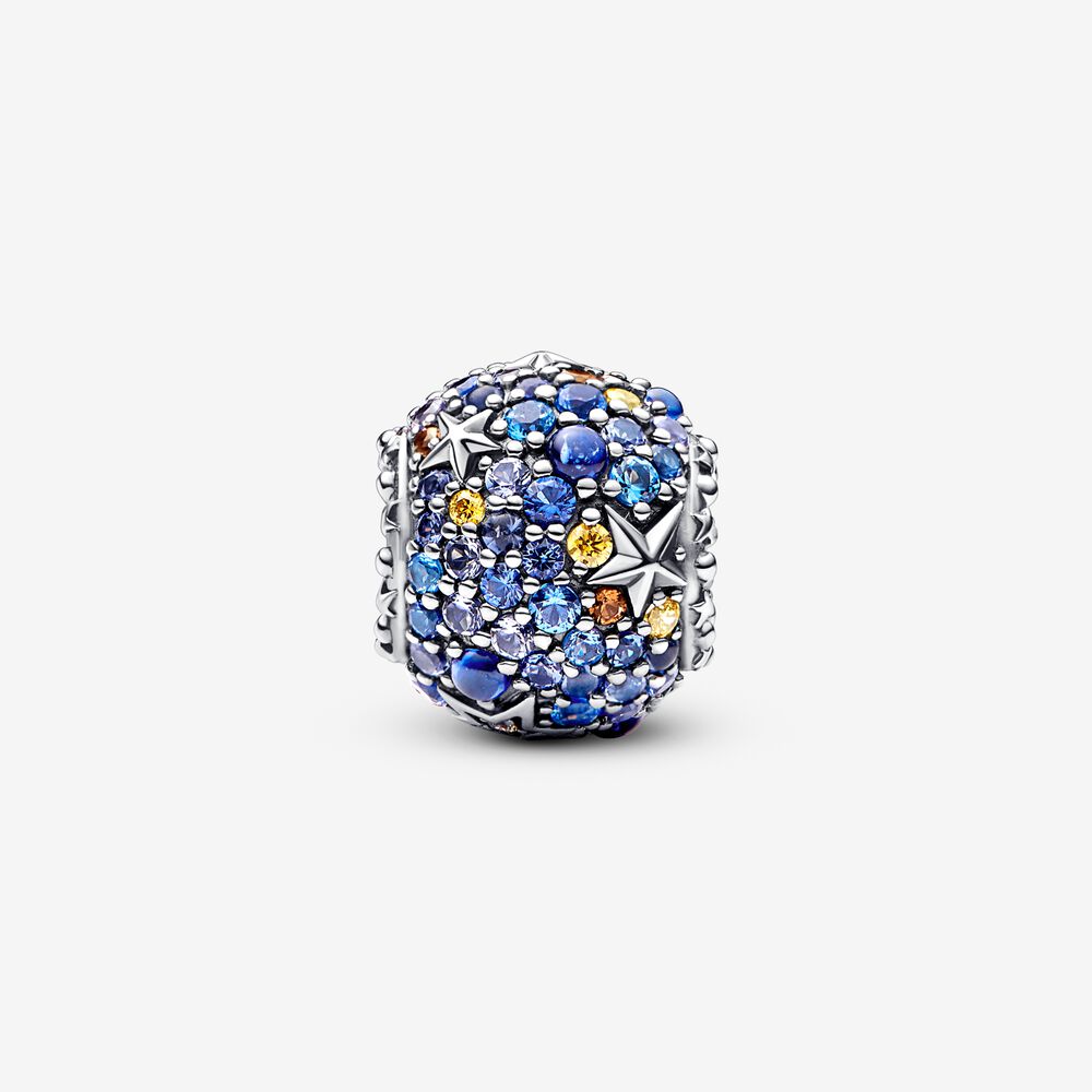 Canalize a beleza cósmica do sistema solar com o Charm Planeta Mercúrio e Estrelas Brilhantes. As pessoas são fascinadas pelos céus noturnos desde os tempos antigos. Este charme de prata de lei com acabamento manual tem forma esférica e é adornado com pavê em toda a sua superfície, com uma mistura de pedras facetadas de corte brilhante e buff liso, criando um efeito brilhante e aquoso. Uma combinação de tons de azul, mel e marrom captura a aparência do planeta e pequenas estrelas de prata de lei elevadas aumentam o efeito cósmico. Uma fileira de estrelas elevadas e microesferas cria uma borda ao redor de cada lado da abertura do encanto. Use-o no seu suporte de charme favorito para adicionar um toque celestial ao seu estilo.
