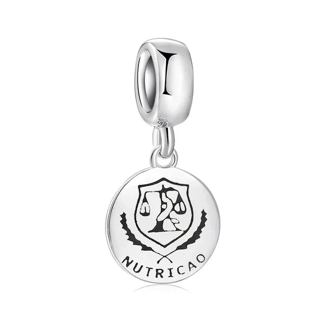 Mostre seu amor pela Nutrição que existe em você com os chamrs Profissões. Feito em prata 925, nossos charms tem 2 opções de modelo um charm pendente com o simbolo de sua profissão e uma versão globo, para usar na sua pulseira favorita.