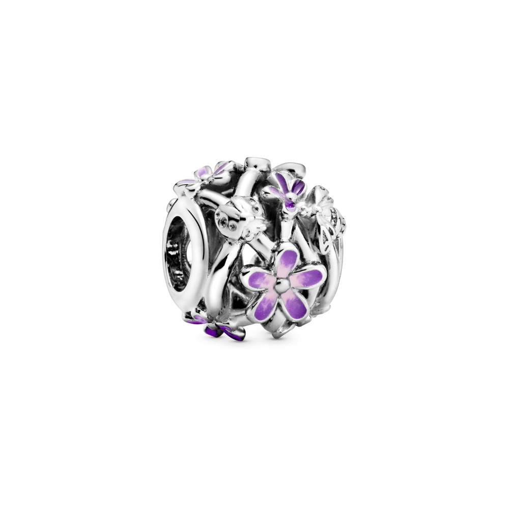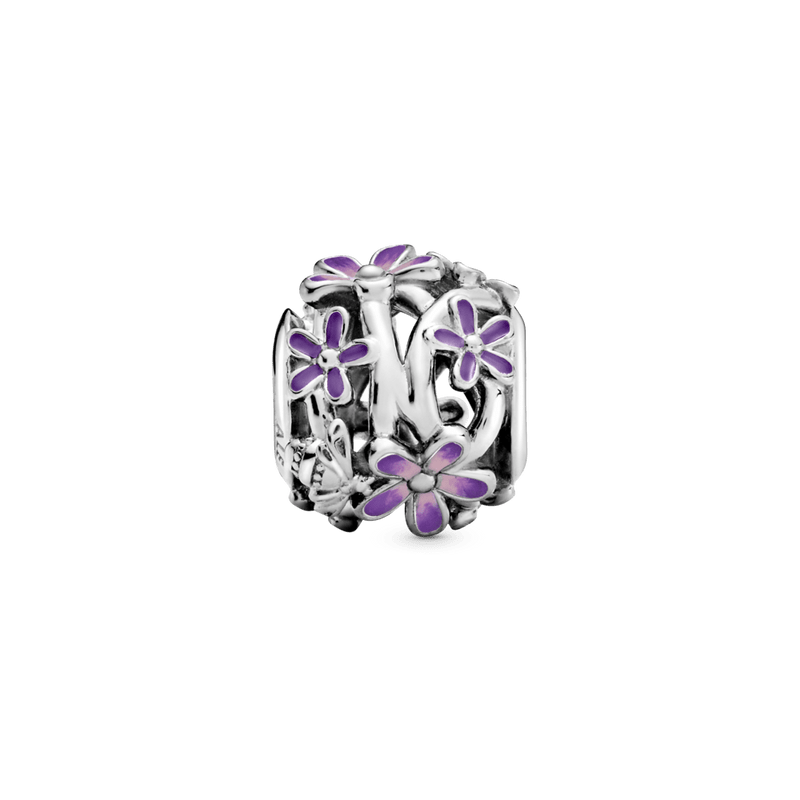 Ilumine o seu look com o Charm Vazado Flor Margarida Roxa. Com acabamento manual em prata 925, este intrincado charme de flores a céu aberto apresenta margaridas delicadas cobertas de lavanda aplicada à mão e esmalte rosa, bem como detalhes polidos de joaninha e abelha. Uma celebração da primavera e dos novos começos, este encanto delicado representa a esperança, a liberdade, a comunidade e a diversidade. Use-o para aproveitar a energia e a doçura da primavera todos os dias, não importa a estação.