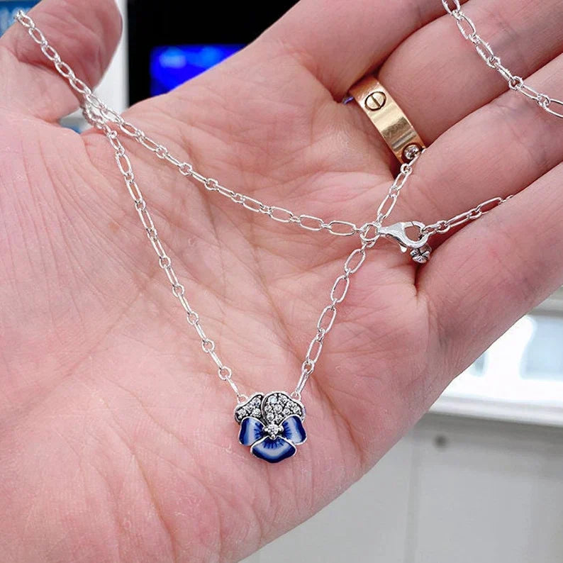 Empreste cor à sua primavera com nosso Colar Amor-Perfeito Azul. Finalizado à mão em prata 925, cada pendente de flor é totalmente exclusivo com pétalas em esmalte pintadas à mão e detalhes em pavé brilhante. Um pequenino charm de flor fica pendente a partir do fecho desta corrente – um detalhe atencioso para quem ocupa seus pensamentos. A flor mais recente para agraciar nosso jardim, o amor-perfeito simboliza o amor em suas diversas formas. Use a sua como um lembrete de todas as pessoas queridas em sua vida.