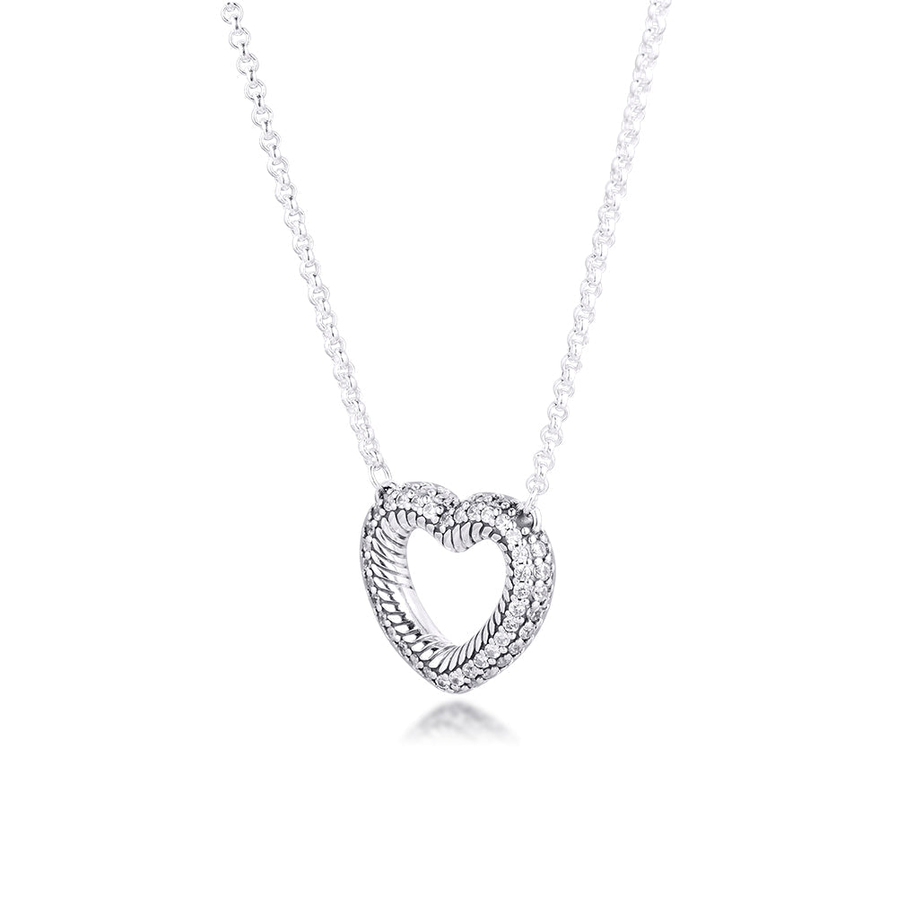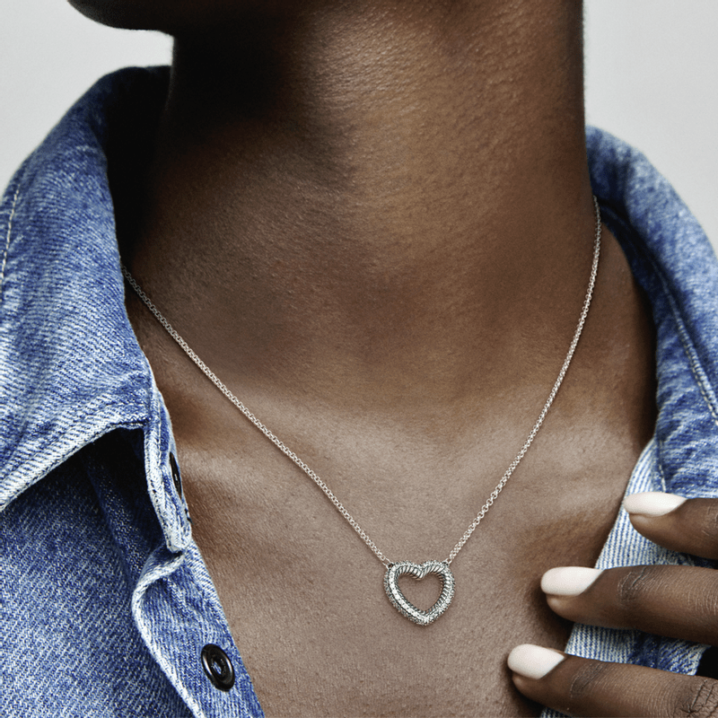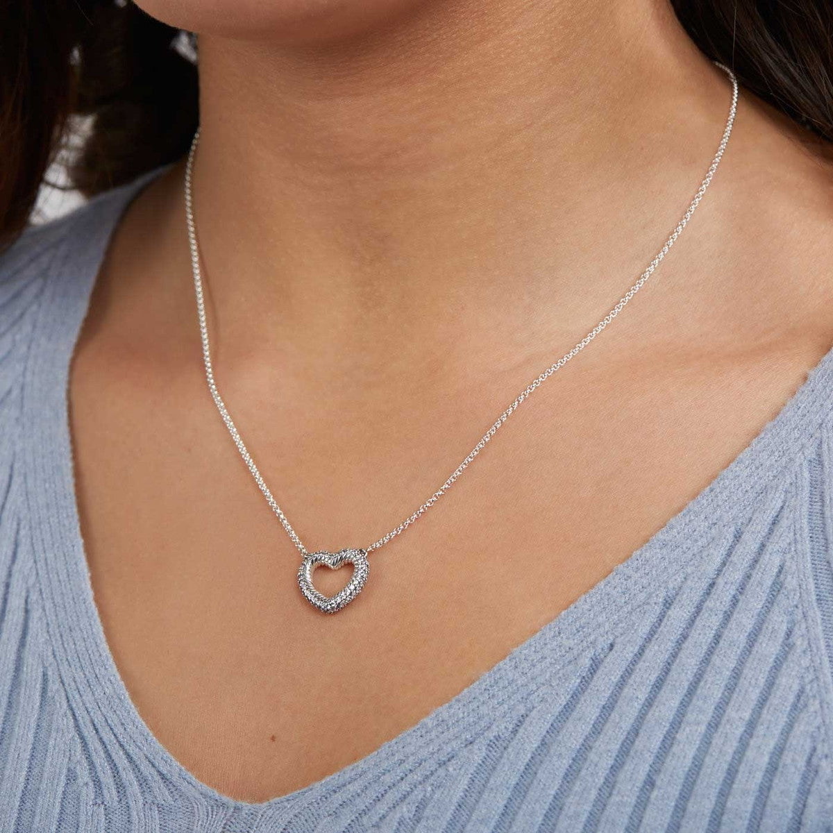 Demonstre seu amor pelo design clássico de joias com a Gargantilha de Coração Vazado e Padrão em Trama em Pavé. Finalizada à mão em prata de lei, esta peça é inspirada na icônica seleção de braceletes em trama. Ostentando zircônia cúbica transparente, o formato de coração vazado é adornado com pedras no exterior e inclui o clássico padrão em trama em seu interior. Altere facilmente o comprimento deste colar de coração para combinar com o seu estilo.