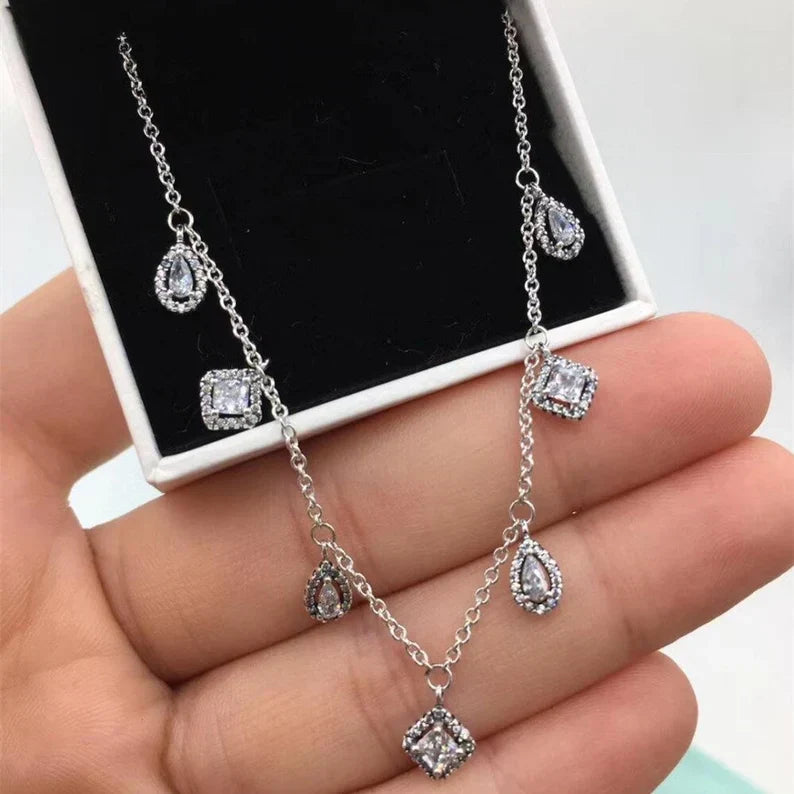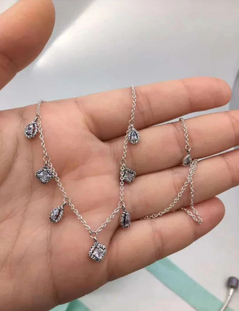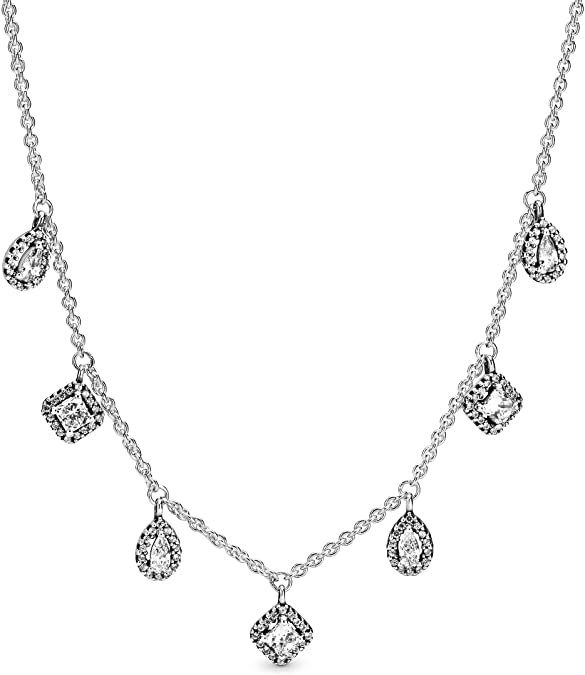 Quando o seu look pede uma peça especial que vai elevar todo o look e levá-lo ao próximo nível, o colar geométrico em prata de lei da coleção Timeless Elegance é a escolha perfeita. Criado com formas alternadas de pêra e pedra quadrada, feitas de zircônia cúbica, este colar é um toque contemporâneo em um clássico que será um grampo em seu guarda-roupa nos próximos anos. Apresentando novas configurações de garras elevadas para permitir mais brilho e brilho, é um verdadeiro espetáculo.