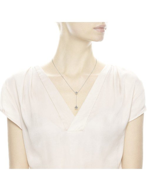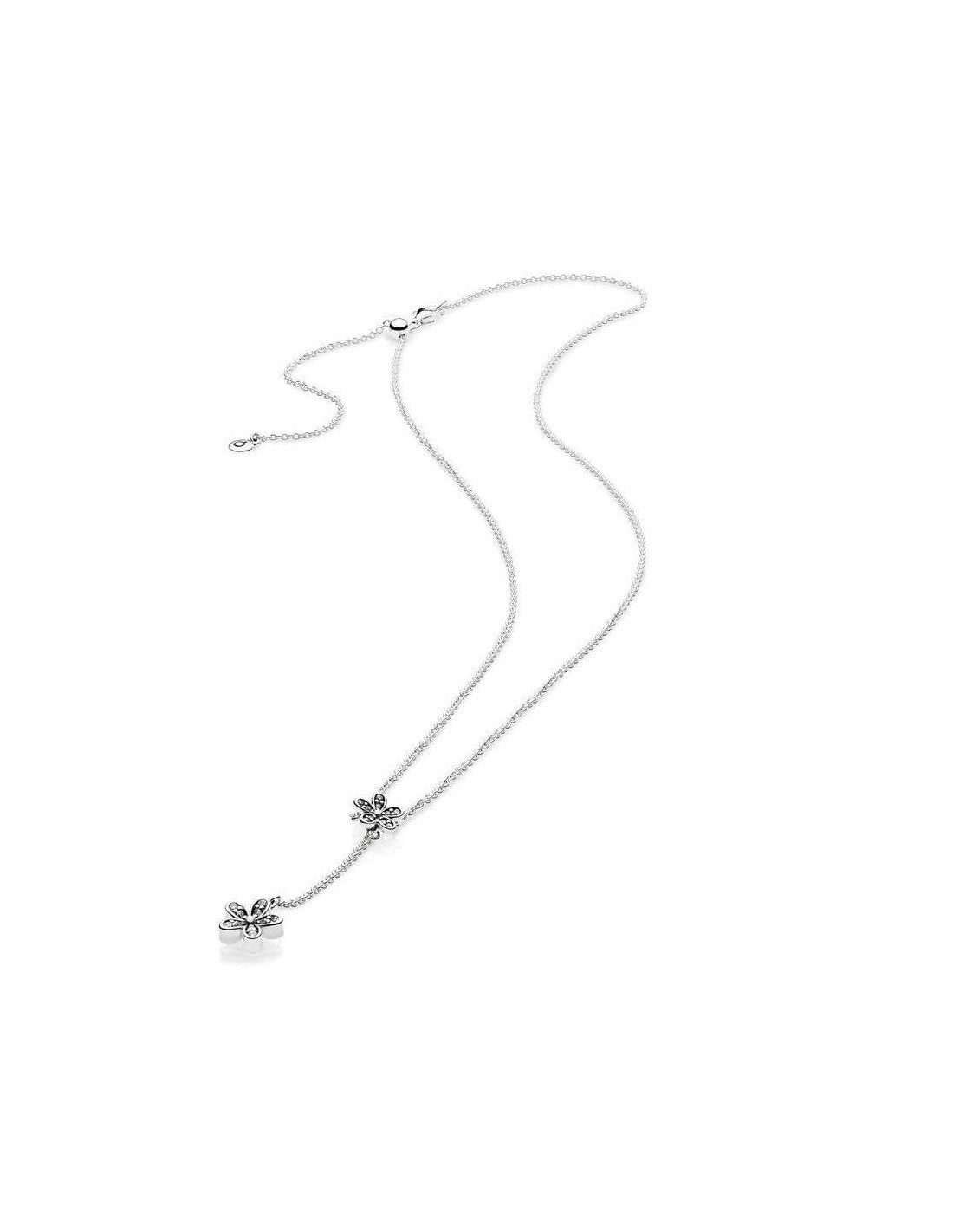 Duas margaridas realçadas com zircônias cúbicas conferem um toque feminino ao delicado colar em Y. Deixe-o brilhar como parte de um look simples ou use-o para modernizar sua combinação de colares. Colar de margaridas em prata de lei com 30 zircônias cúbicas transparentes com cravação em contas e colar de 60 cm.