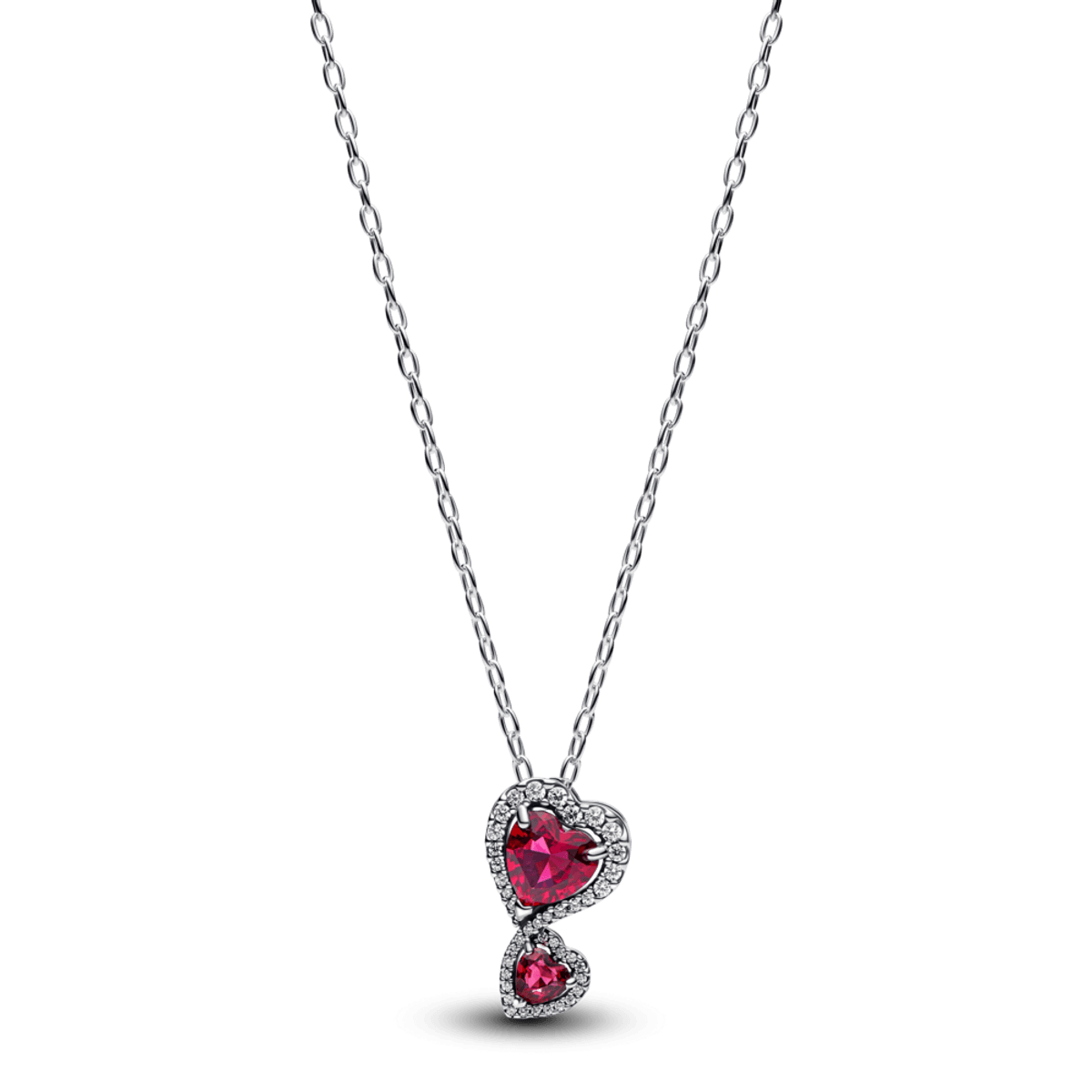 Exalte a união com o Colar de Prata Dois Corações Vermelhos da Pandora. Fabricado em prata, apresenta dois cristais man-made vermelhos de corte coração, dispostos verticalmente e rodeados por uma auréola brilhante de pavé. A corrente ajustável (60 cm, 55 cm e 50 cm) oferece versatilidade para criar looks sobrepostos ou um destaque delicado. Um símbolo perfeito de amor e conexão, ideal para momentos especiais ou para adicionar sofisticação ao seu estilo diário.
