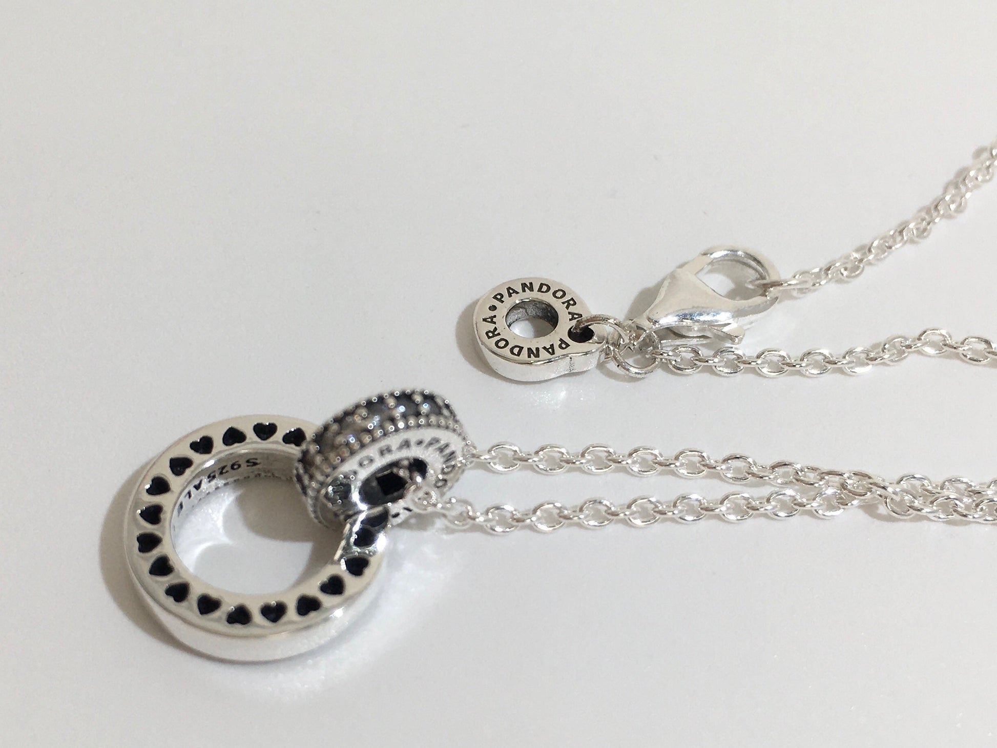 Faça uma declaração com o pingente e colar Double Circle. Este colar de prata esterlina apresenta dois círculos fundidos para formar um pingente. O círculo superior inclui uma fileira de pavé de zircônias cúbicas transparentes ao longo da borda e o logotipo de um lado. O círculo inferior oscila para frente e para trás a partir do círculo superior e apresenta pavé de zircônias cúbicas claras de um lado e corações recortados do outro. Vire o colar para mudar o visual.