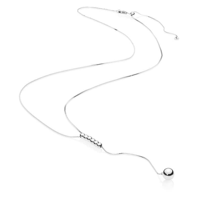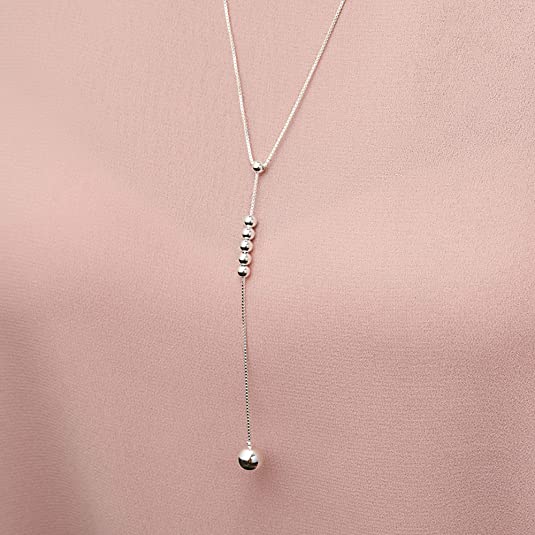 Faça com que os detalhes de contas em prata 925 sejam a peça central do seu visual com o colar em forma de Y. A peça de prata esterlina é detalhada com esferas polidas e apresenta uma bola maior na parte inferior. O colar ajustável tem um fecho deslizante, para que você possa criar a queda perfeita para se adequar ao seu decote. Para ajustar, puxe suavemente a corrente oposta ao fecho lagosta.