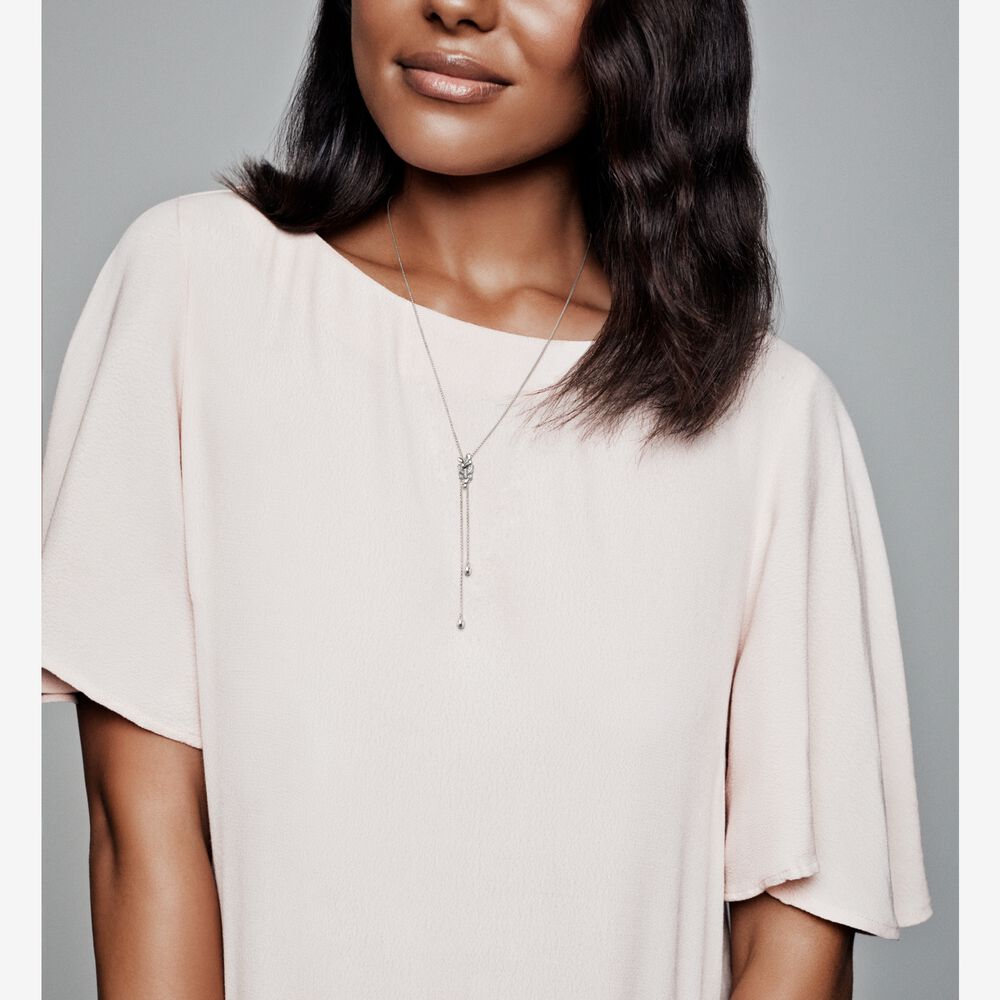 Deixe seu estilo voar sobrepondo este colar em Y com outros colares que você ama. O estilo prata de lei apresenta um pingente de borboleta simbólico e delicado que brilha a cada movimento seu. Um fecho deslizante permite ajustar o comprimento, basta puxar as contas para reposicioná-lo. Deixe o simbolismo da borboleta moldar seu estilo e use o colar como um lembrete de mudança positiva em sua vida.