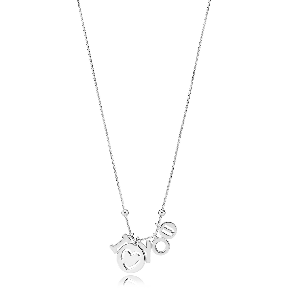 Faça uma declaração de amor com este colar de mensagem em prata 925. Sua fonte oscilante chique soletra a mensagem “Eu te amo”.