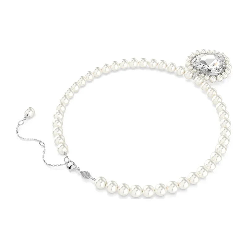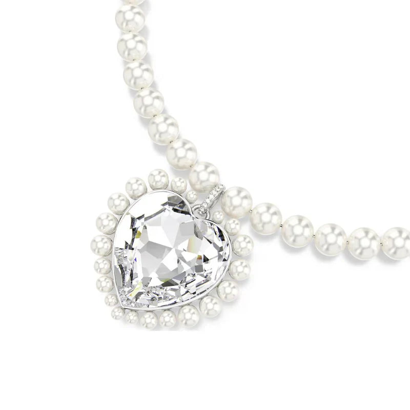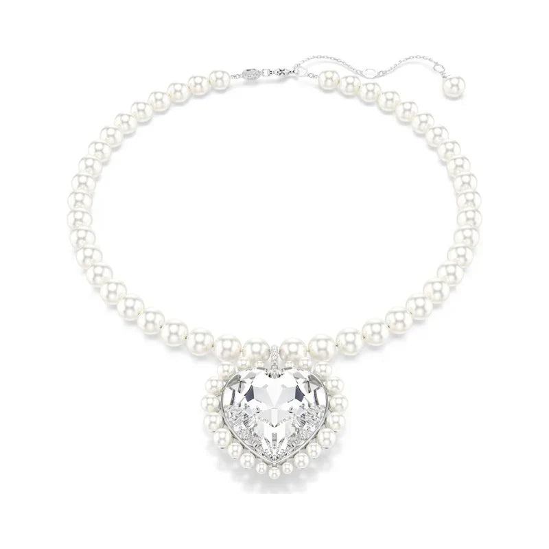 O colar de colaboração Ariana Grande apresenta um impressionante pingente de cristal em forma de coração cercado por lindas pérolas brancas. O pingente está preso a um cordão de pérola branca cintilante. O colar é feito de metal de joalheria que foi banhado a ródio para um lindo rosa claro. Combine com outras joias Swarovski e crie seu próprio estilo pessoal.