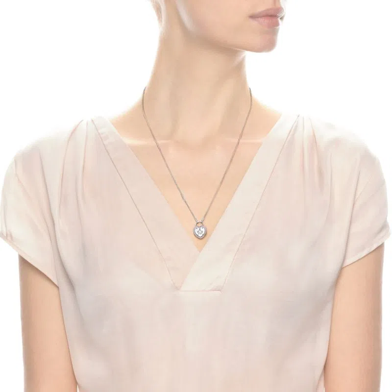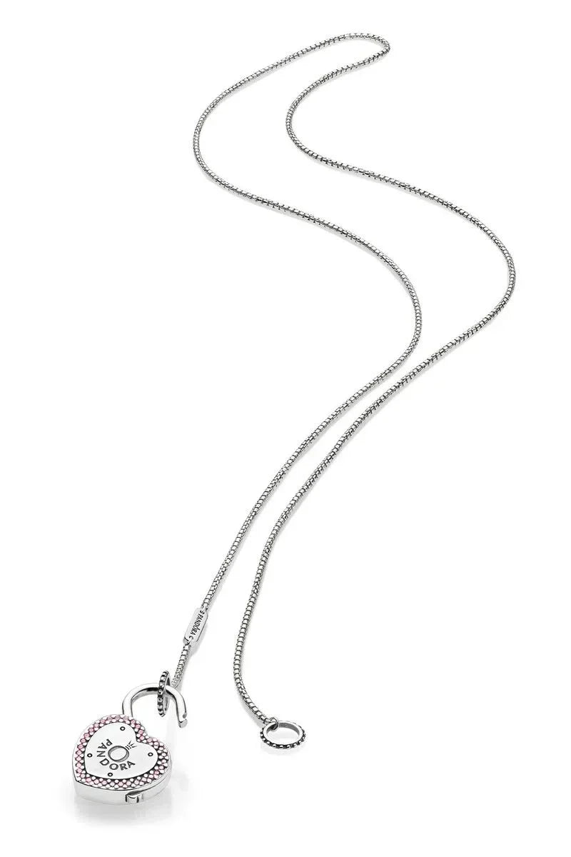 Cadeado Coração com zircônia rosa em prata de lei 925, esse colar oferece a fusão perfeita entre estilo e brilho a este colar atemporal.