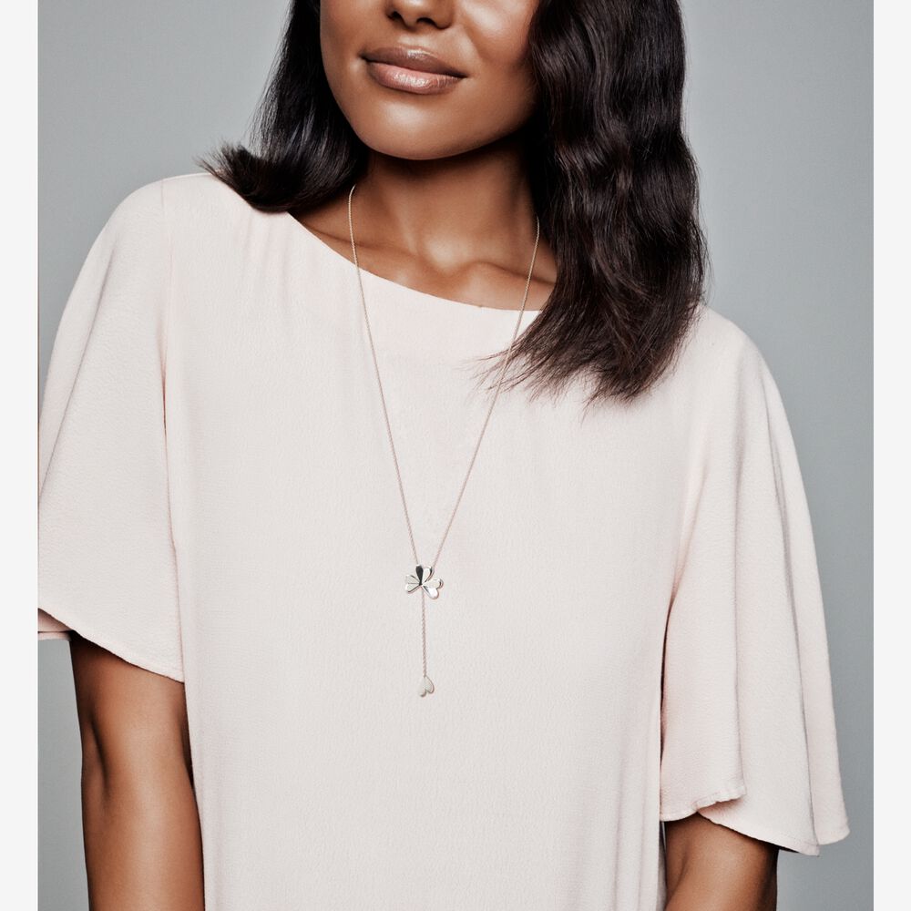 Estilo e sorte andam de mãos dadas neste colar de prata de lei, detalhado com um brilhante trevo de quatro folhas. O design deslizante em forma de Y permite usá-lo de várias maneiras: puxe suavemente a folha inferior para ajustar seu comprimento.