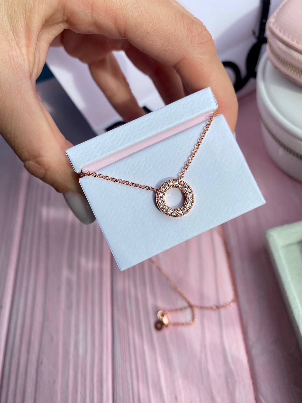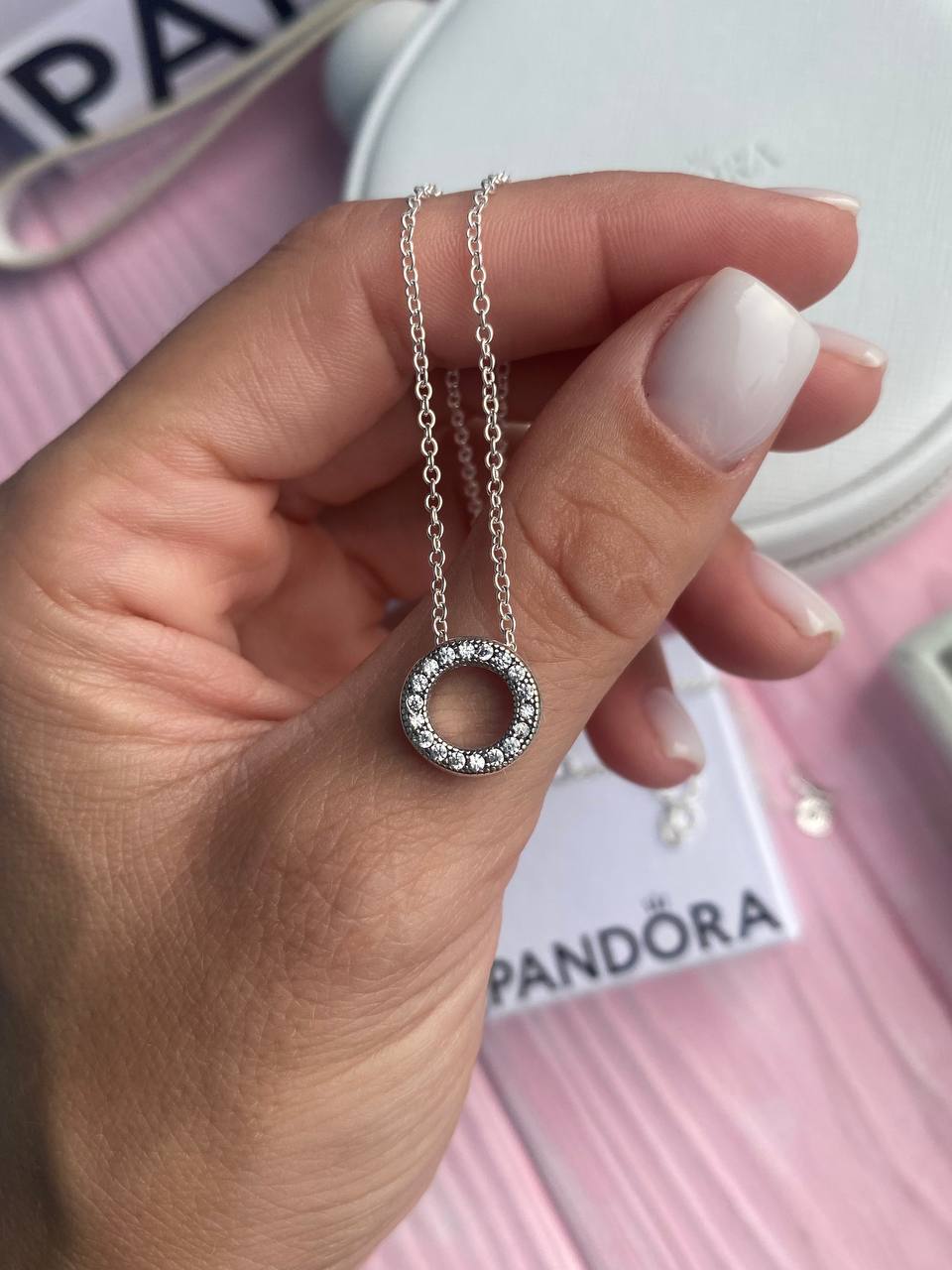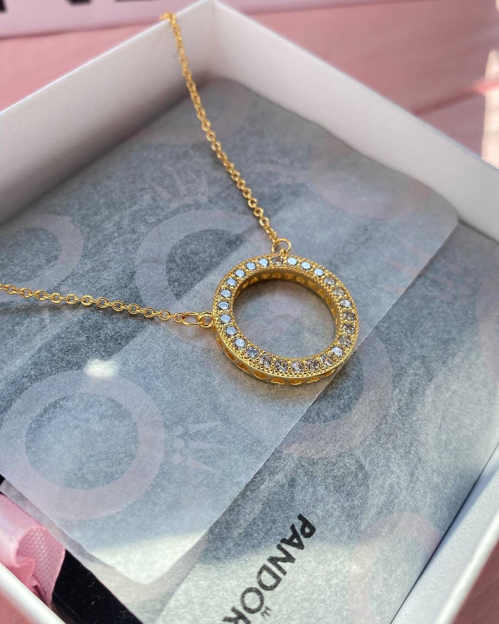 Os círculos são um símbolo do infinito, sem começo ou fim. O círculo liso cravejado de pedras do nosso colar pendente exclusivo cria uma elegante declaração de eternidade que presta homenagem à nossa herança na fabricação de joias. Detalhado com o logotipo Pandora e corações recortados, o estilo reversível é uma adição atemporal a qualquer caixa de joia. Também é um presente atencioso para quem adora os clássicos.