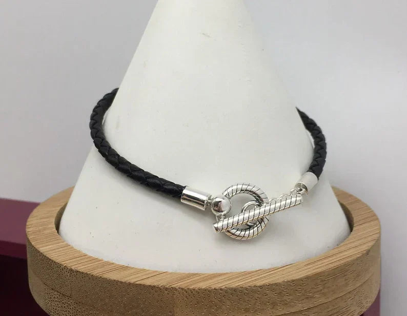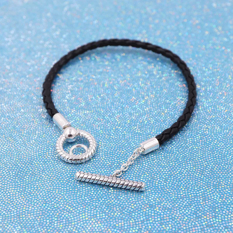 A pulseira de couro trançado apresenta um novo visual, com uma fivela em T em prata 925, embelezada com a textura de corrente de cobra da marca. Passe a fivela em T pelo menor círculo dos laços da corrente de cobra para prender o fecho. Como o couro é um material natural, é normal que se desgaste com o tempo. A pulseira de couro trançado pode ser combinada com até nove pingentes para adicionar um toque único ao visual.