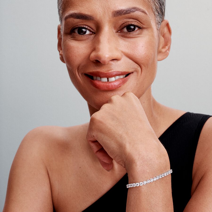 Nossa pulseira de tênis clássica reimaginada é feita de prata esterlina e apresenta uma fileira cintilante de zircônia cúbica redonda de 34 garras de corte brilhante. Projetado com camadas em mente, esta é a peça definitiva para adicionar escala e profundidade às suas pilhas com seu tamanho de pedra maior. Use o seu como uma declaração cintilante durante toda a temporada e além, ou embrulhe-o como uma surpresa brilhante para quem você ama.
